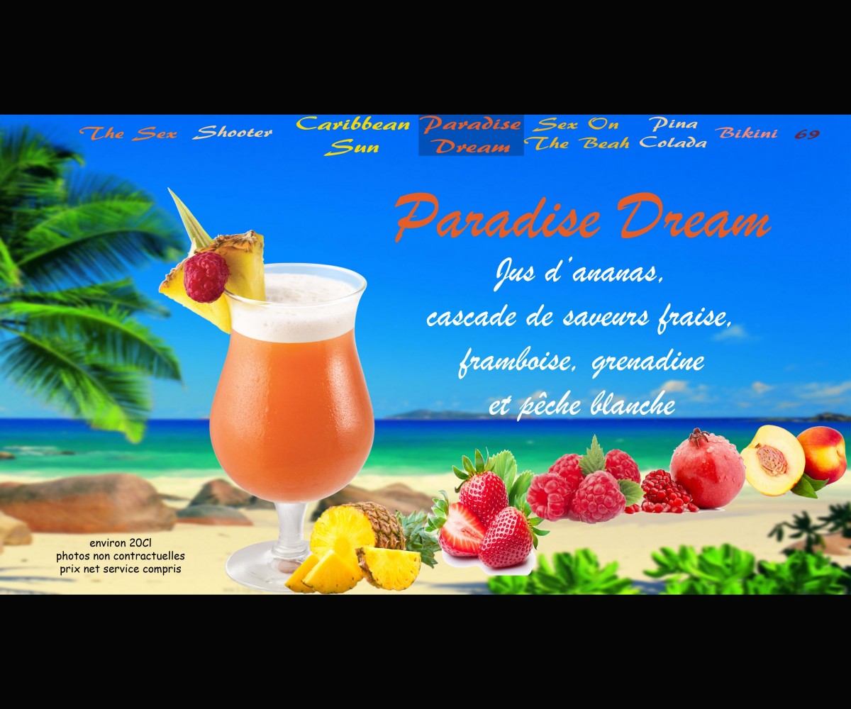 Ananas, fraise, framboise, grenadine et pêche blanche