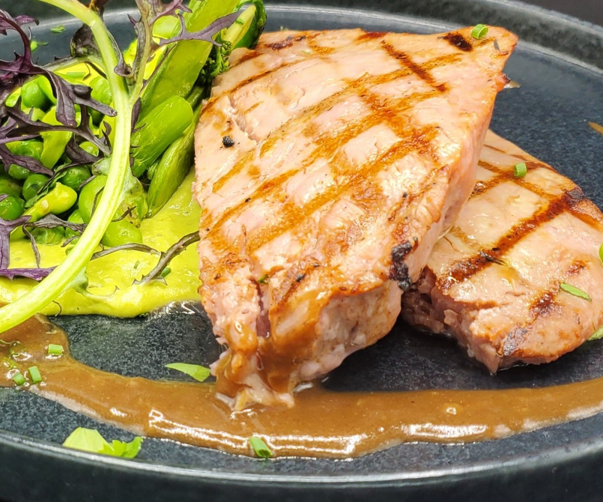 Suprême de volaille fermière, purée de pommes de terre, légumes de saison et jus son corsé
