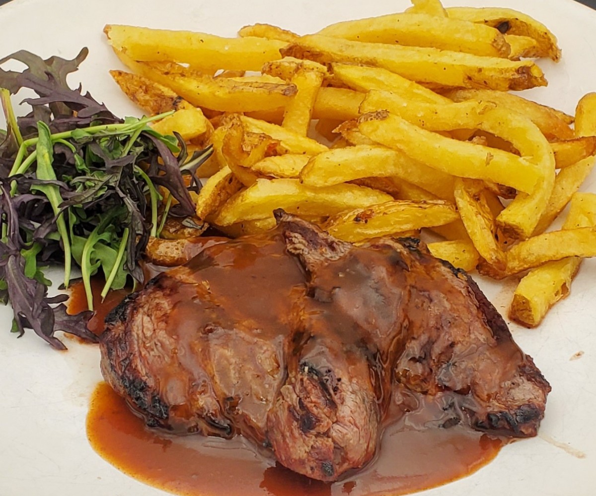 Plat du moment : Bavette de boeuf, sauce madère aux morilles, frites maison