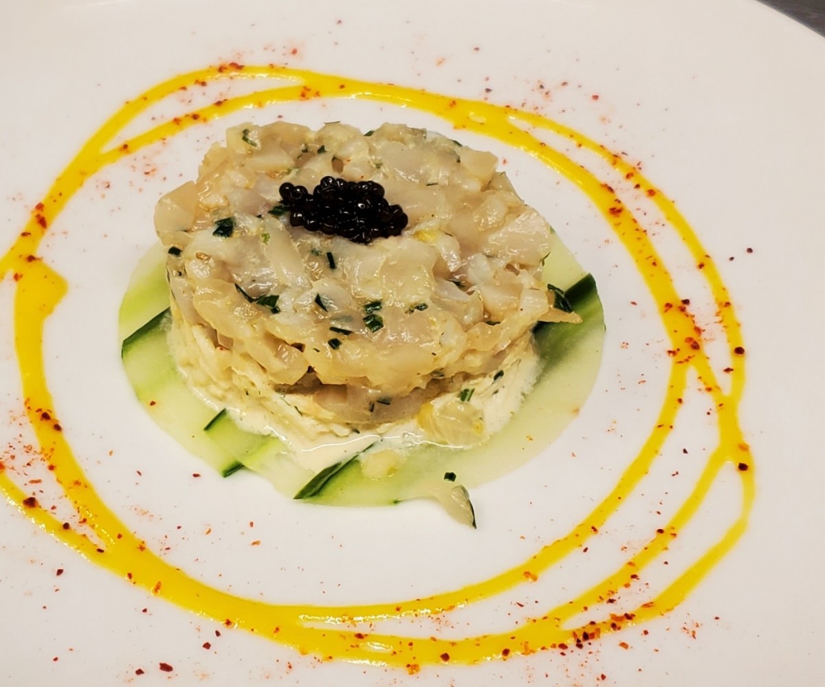 Salade de crabe et rémoulade de céleri, gelée de pomme verte et mâche nantaise