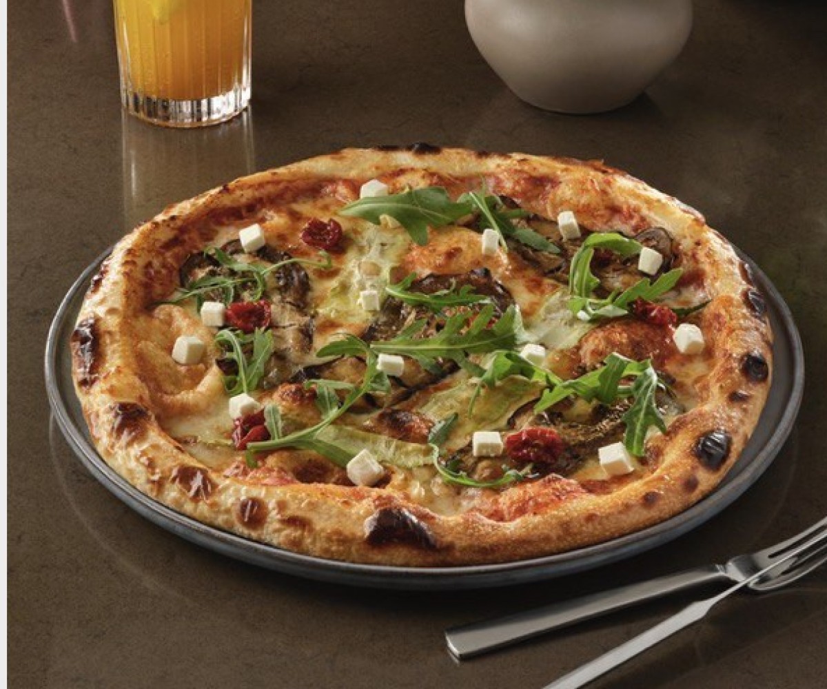 Grilled chicken, mashed potatoes, vegetable ratatouilleand porcini mushroom sauce.