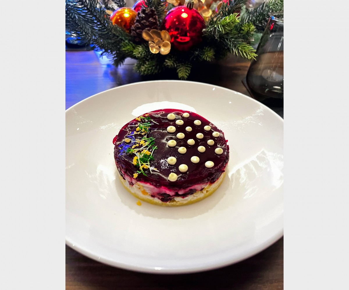 A multilayered composition of selected ingredients, complemented by a signature sauce with horseradish root. Bright flavor and a modern take on a favorite classic.