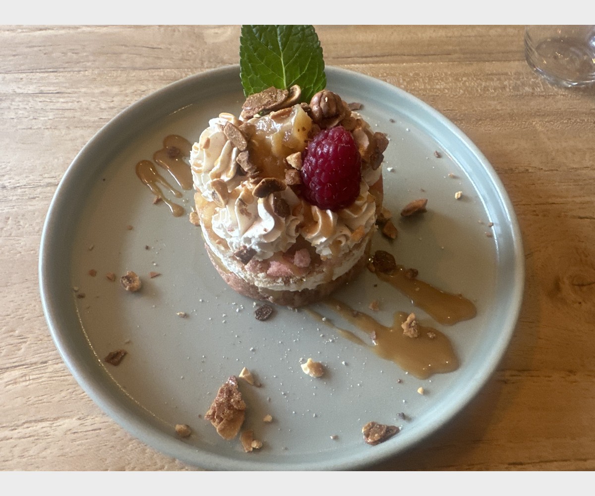 Délice de pommes caramélisées, mousse façon tiramisu , biscuit sablé