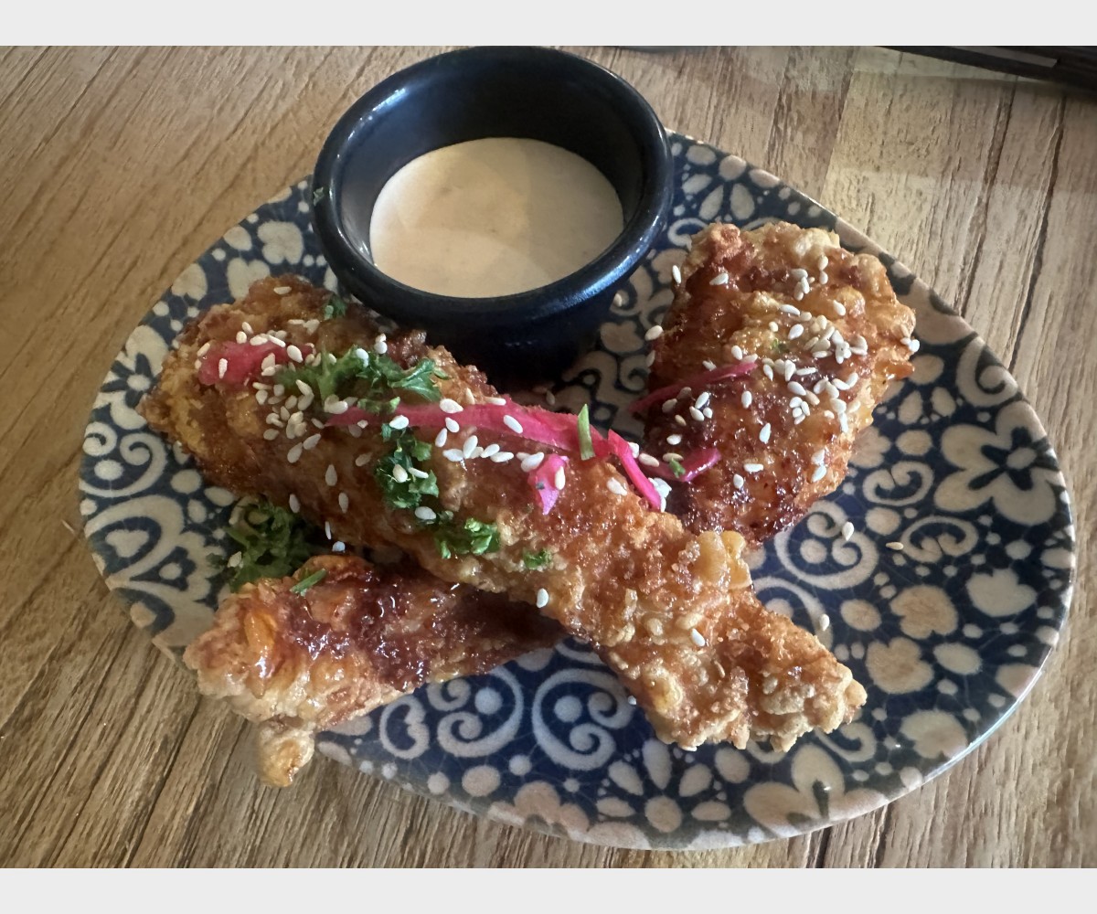 Tenders de poulet sauce yakitoricreme de sesame ,citron et sriracha