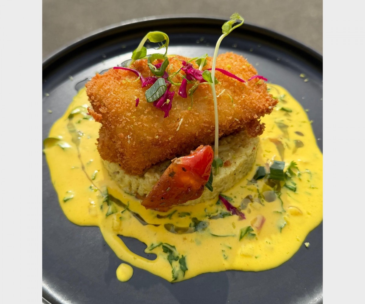 Filet de Lieu croustillant farci aux moules normandes et crevettes risotto de Mamie Natia