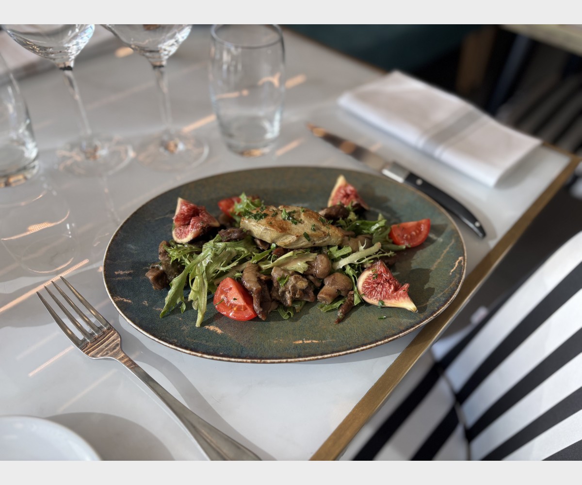 Salade, Curé Nantais pané Panko, tomates cerises et viande des grisonsPlat