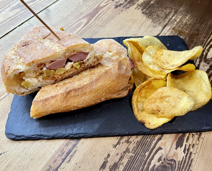 Pane fresco con wurstel, patatine fritte, ketchup e maionese12.00 €