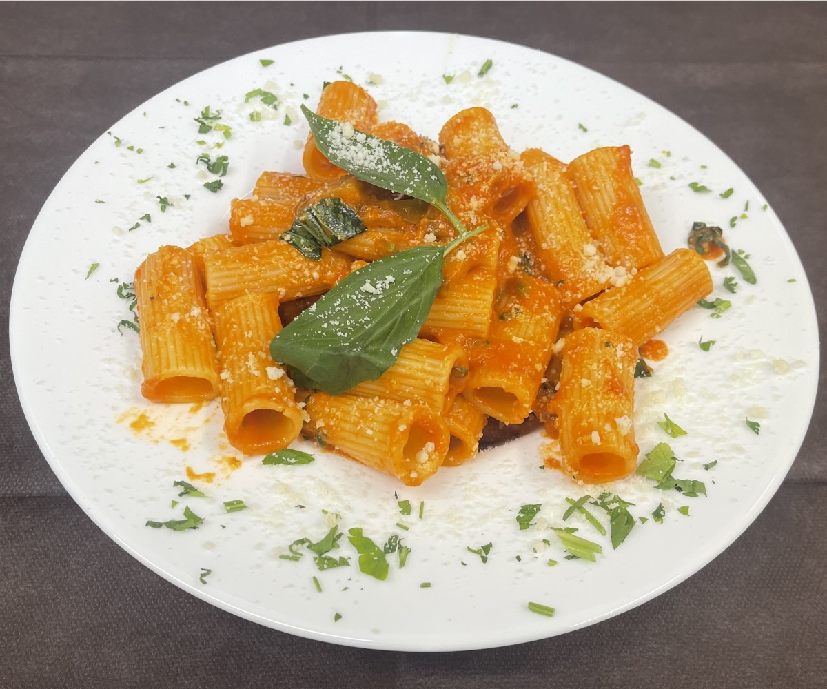 Con ricotta, pomodorini datterino gialli, datterino rosso e basilico frescoBase classica