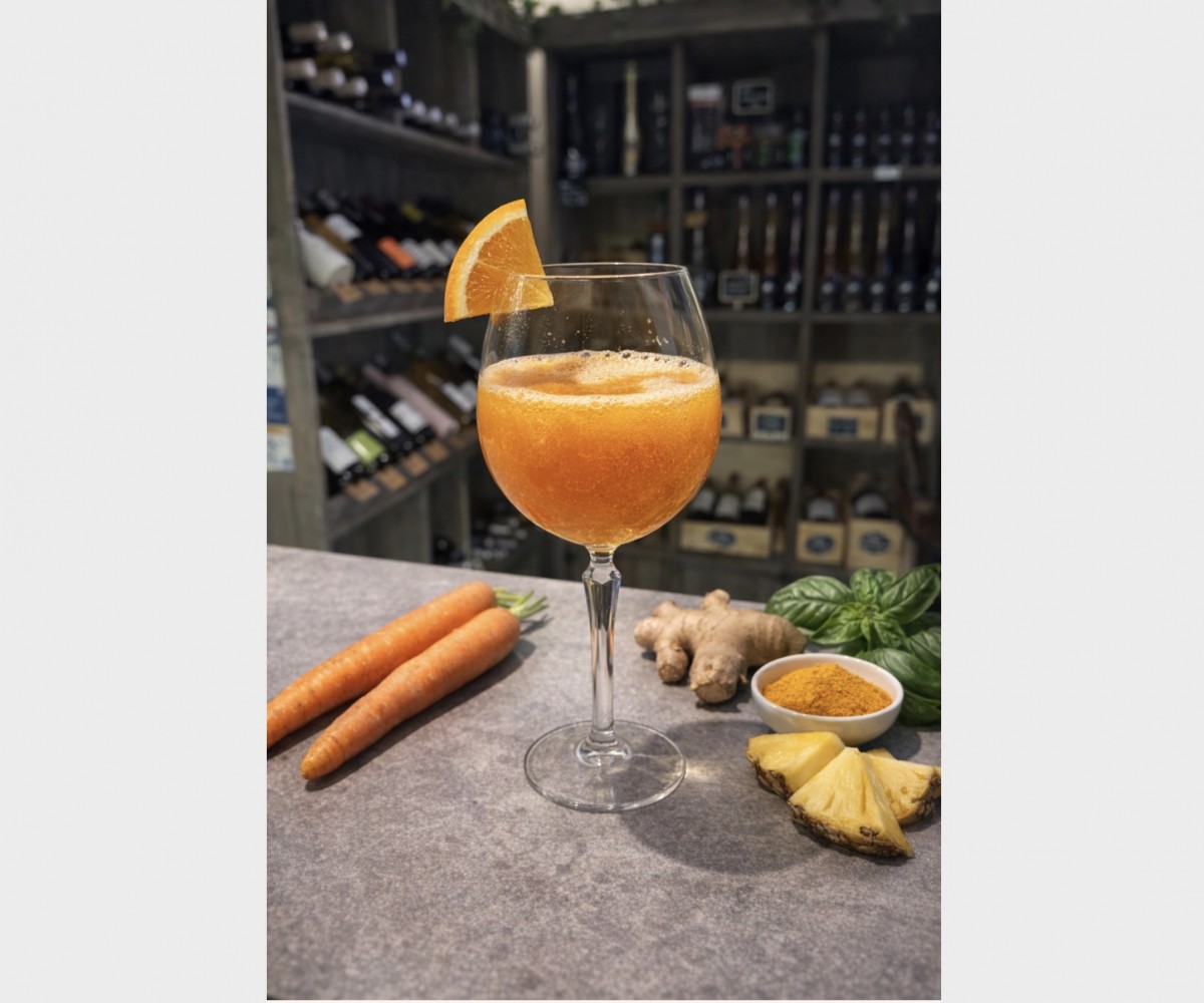 Pétillant ensoleillé mêlant carotte, orange, ananas, relevé d’une touche de gingembre et de curcuma pour un boost naturel et gourmand.
