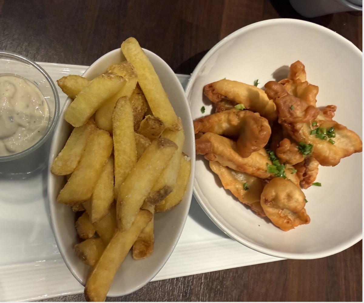 Mélange de champignons sautés, sauce crémeuse, paincroquant à l’ail grillé