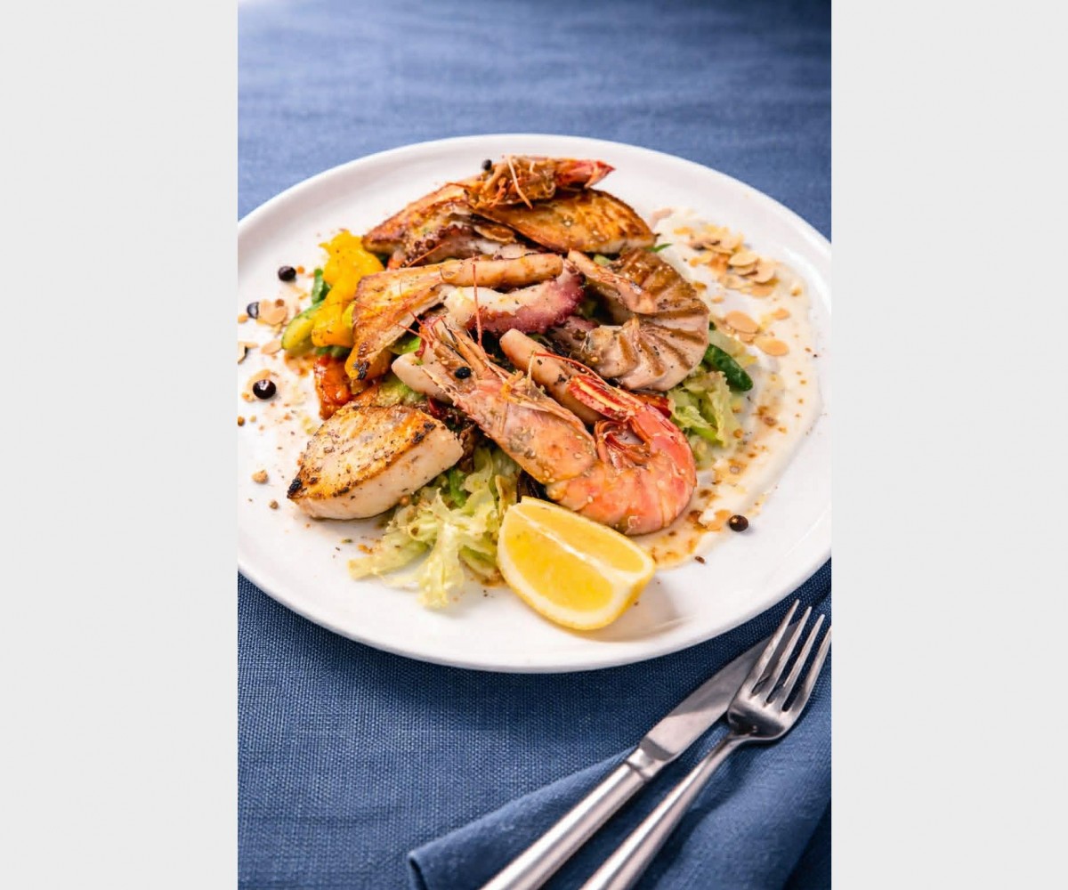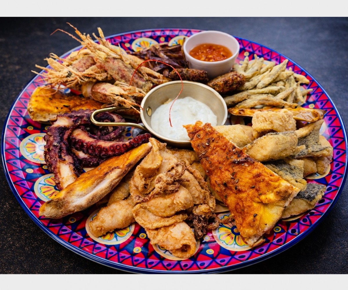 Polpo, arancini nero di sepia, macchu(pesce) fritto, tuna agrodolce, neonati, tartar sauce