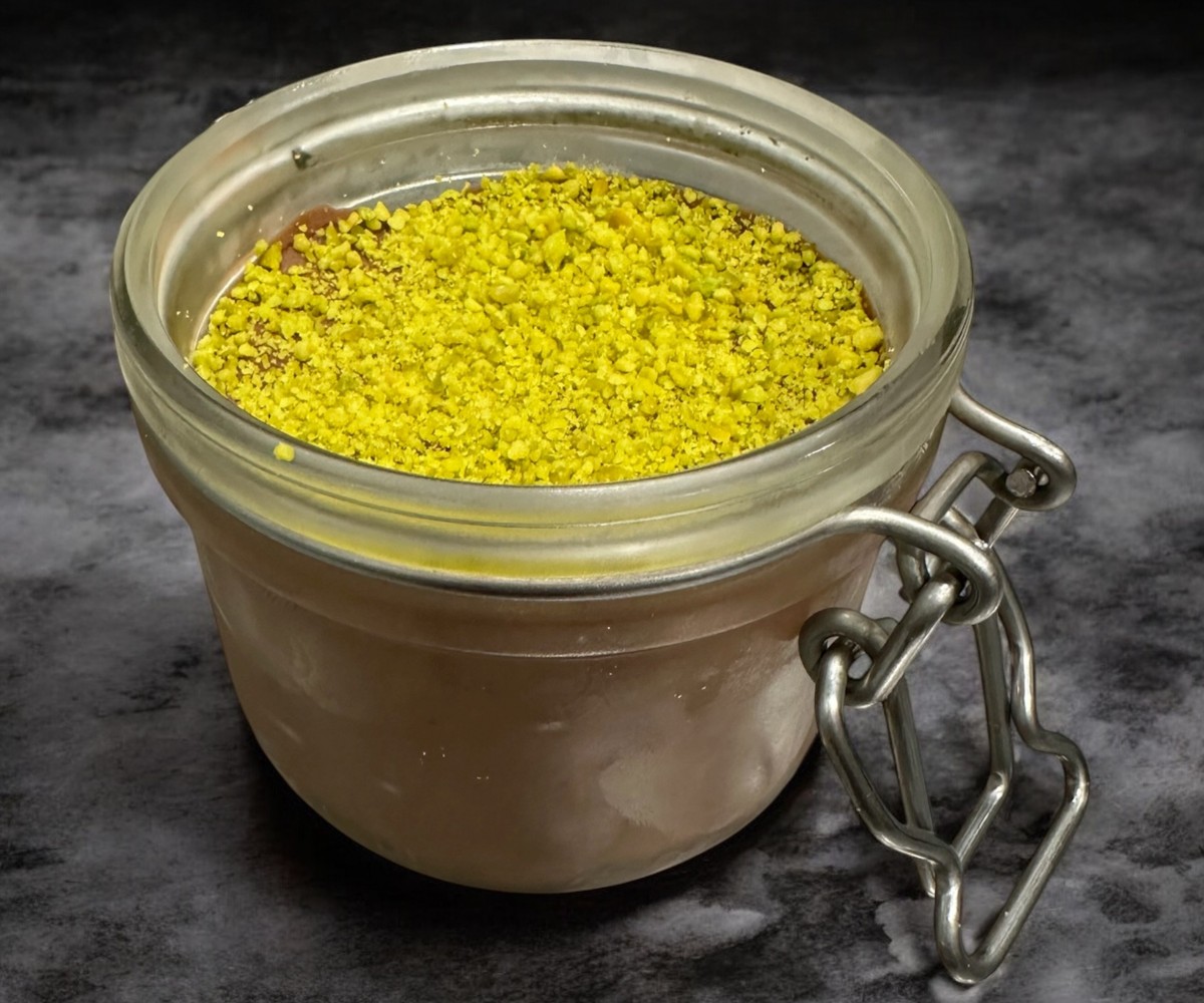 À base de mascarpone, oeuf, coulis de fraise basilic maison et éclats de pistachesSans café...