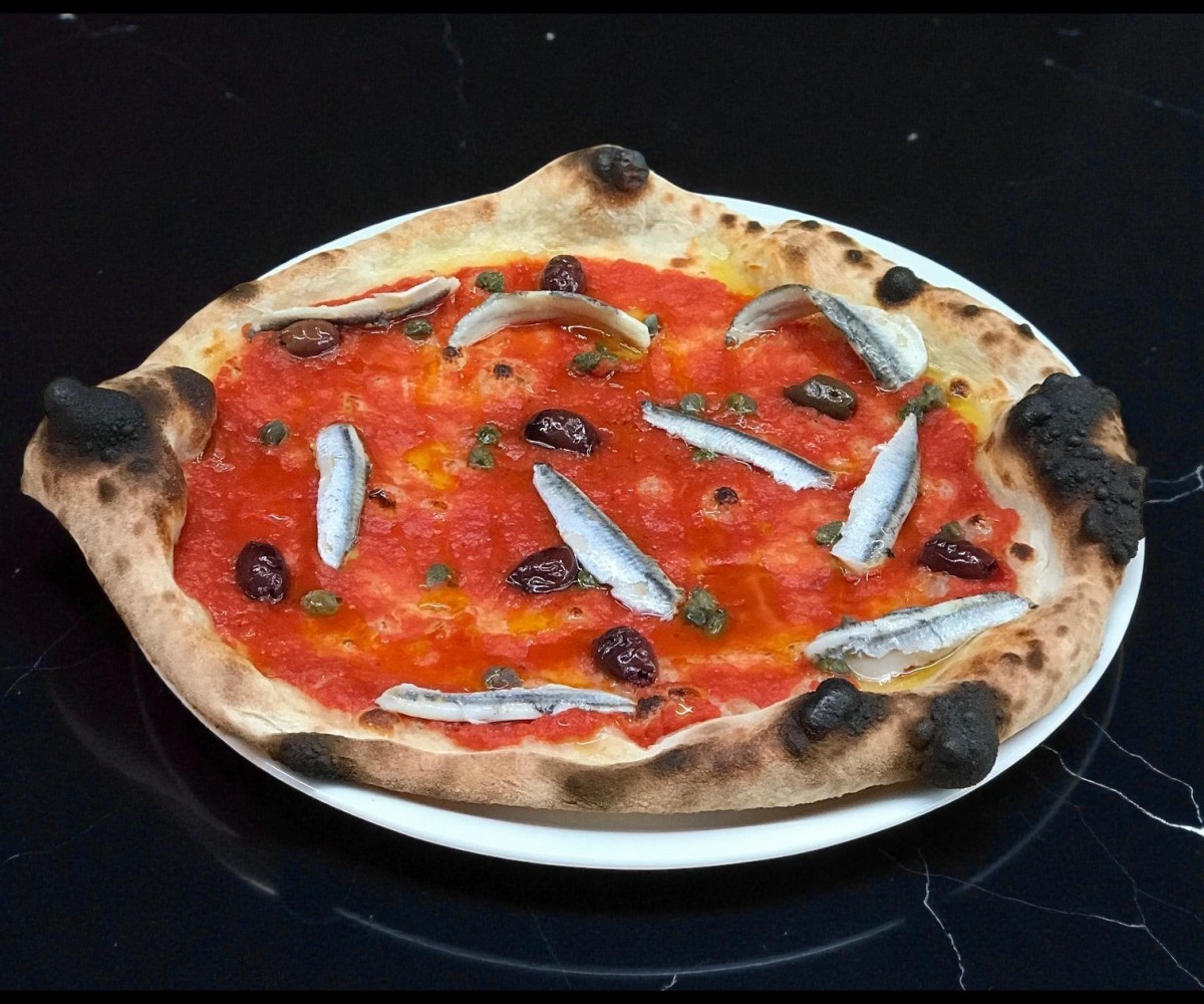 Base tomate italienne, câpres, olives noires, sortie de four: anchois non salées