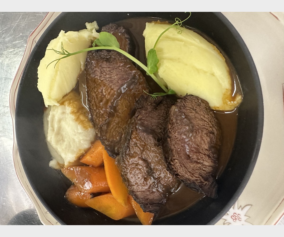 Sélectionnée par notre boucher Mr Jargot taillée à 350 gr, croustillante et moelleuse,sauce morilles et gratin Savoyard