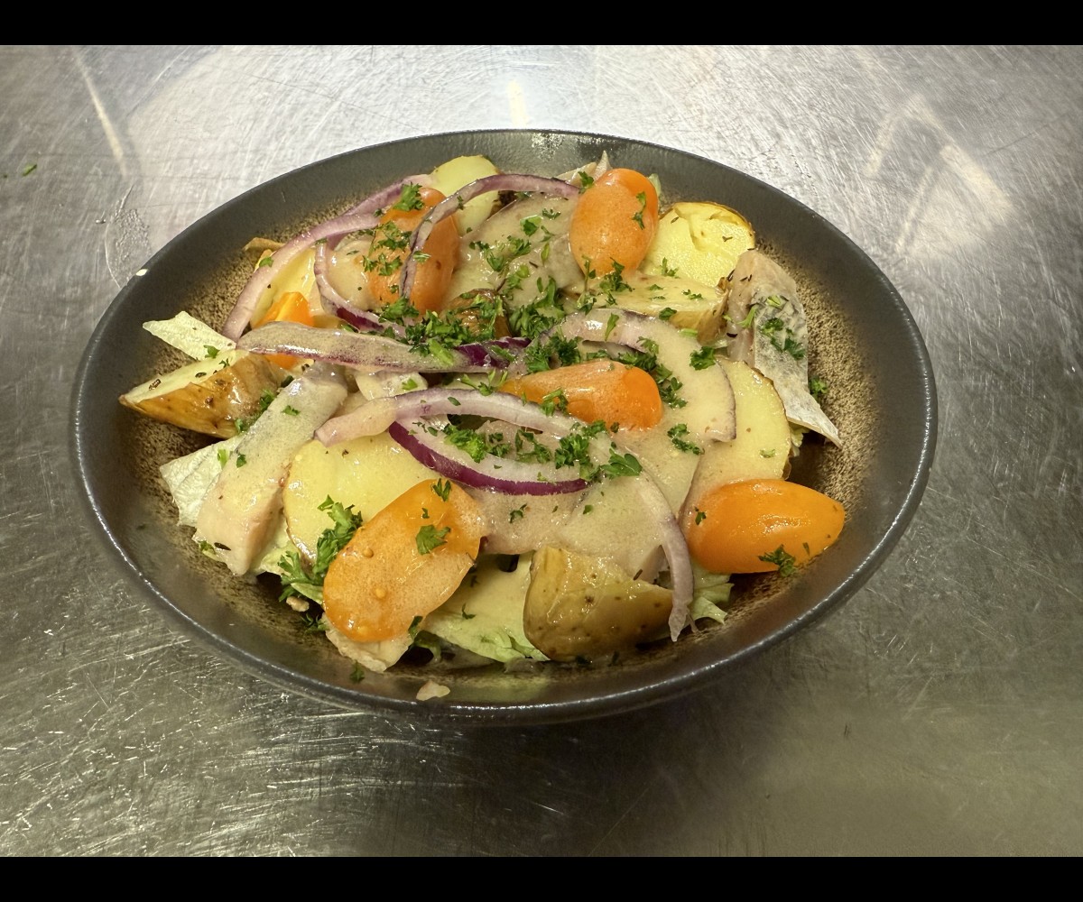 Aiguillettes de poulet, fromage à raclette, lard, sauce tartareAccompagnement