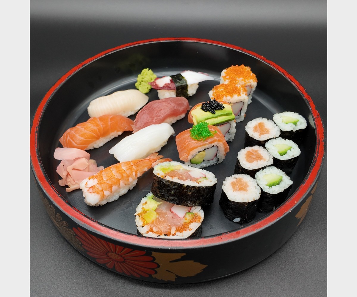 Thon, saumon, sériole, avocat, concombre, radis marinés