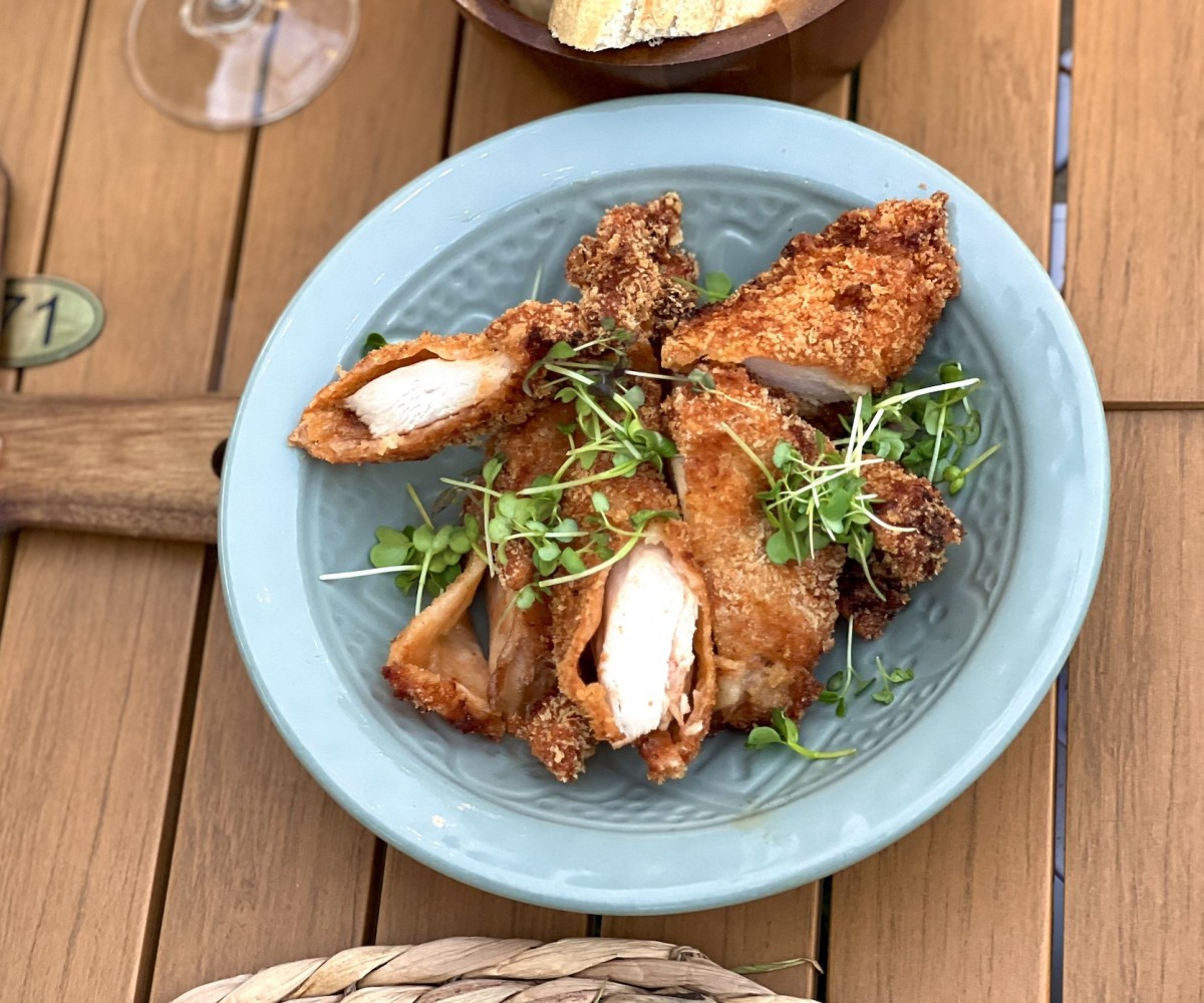 Crudités, tapenade, houmous maison, tenders de légumes, onions rings et beignets de fleurs de courgettes, aïoli