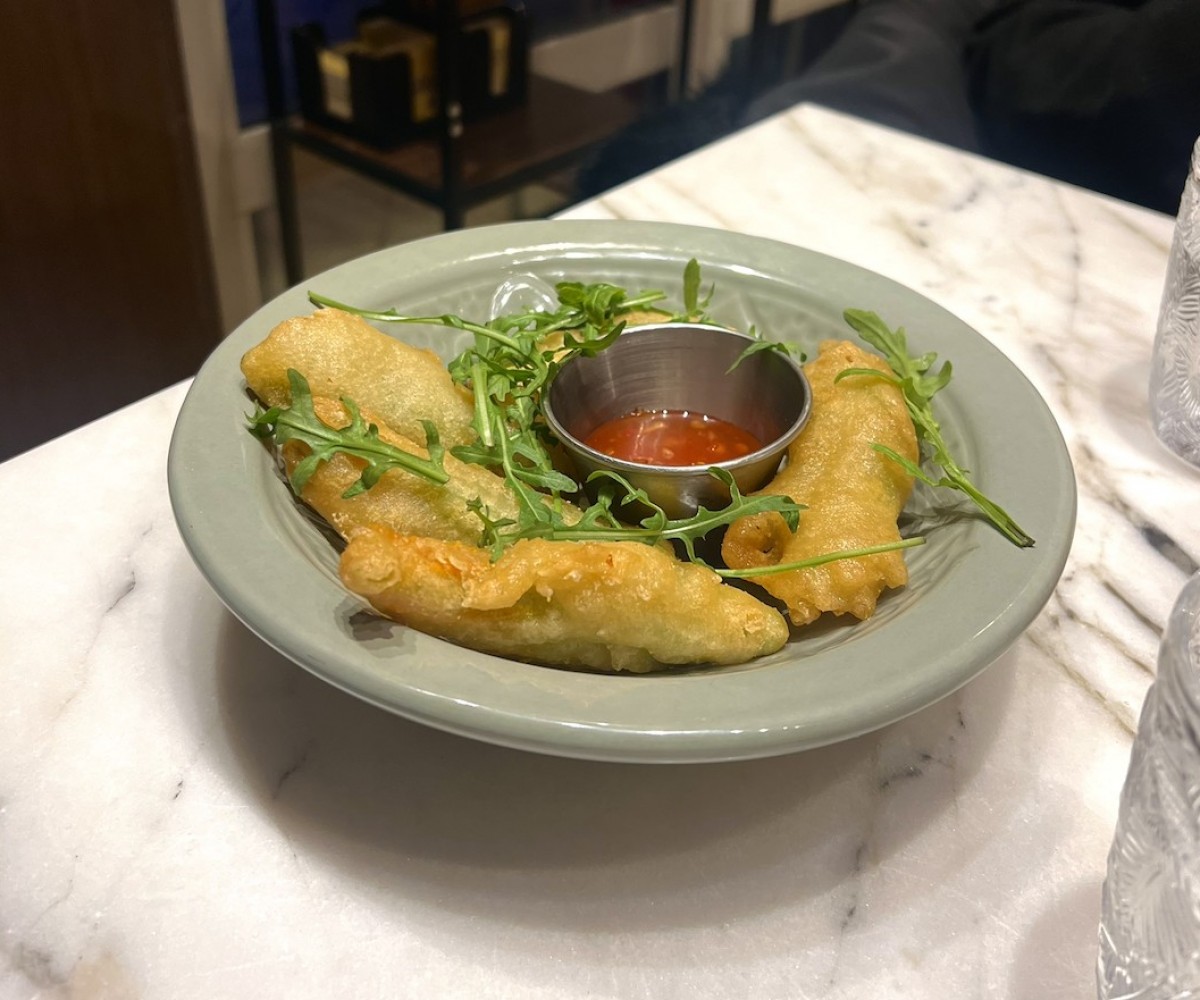 Fleur de courgettes, Jalapeños, Crevettes panées, Onions rings, Acras de morue au piment d'espelette, camemberts panés et sauces