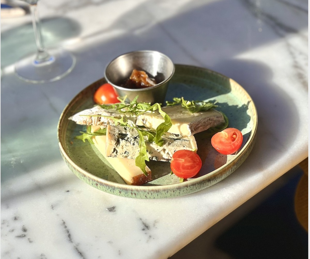 Camembert rôti au lait cru, charcuteries et pommes grenailles