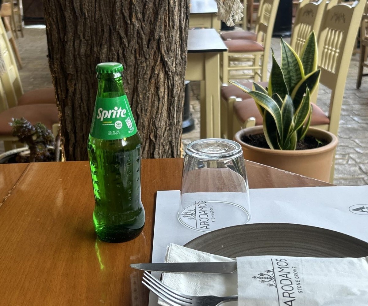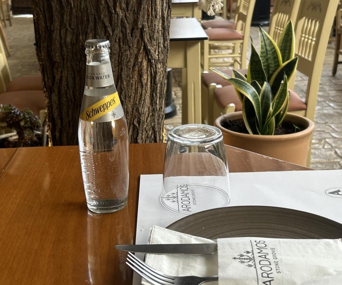 Our bread comes from 25-year-old sourdough (manna) from Mount Athos. We feed it constantly and make more. It is baked in a wood-fired oven. The first loaf is free, it is our way of welcoming you.