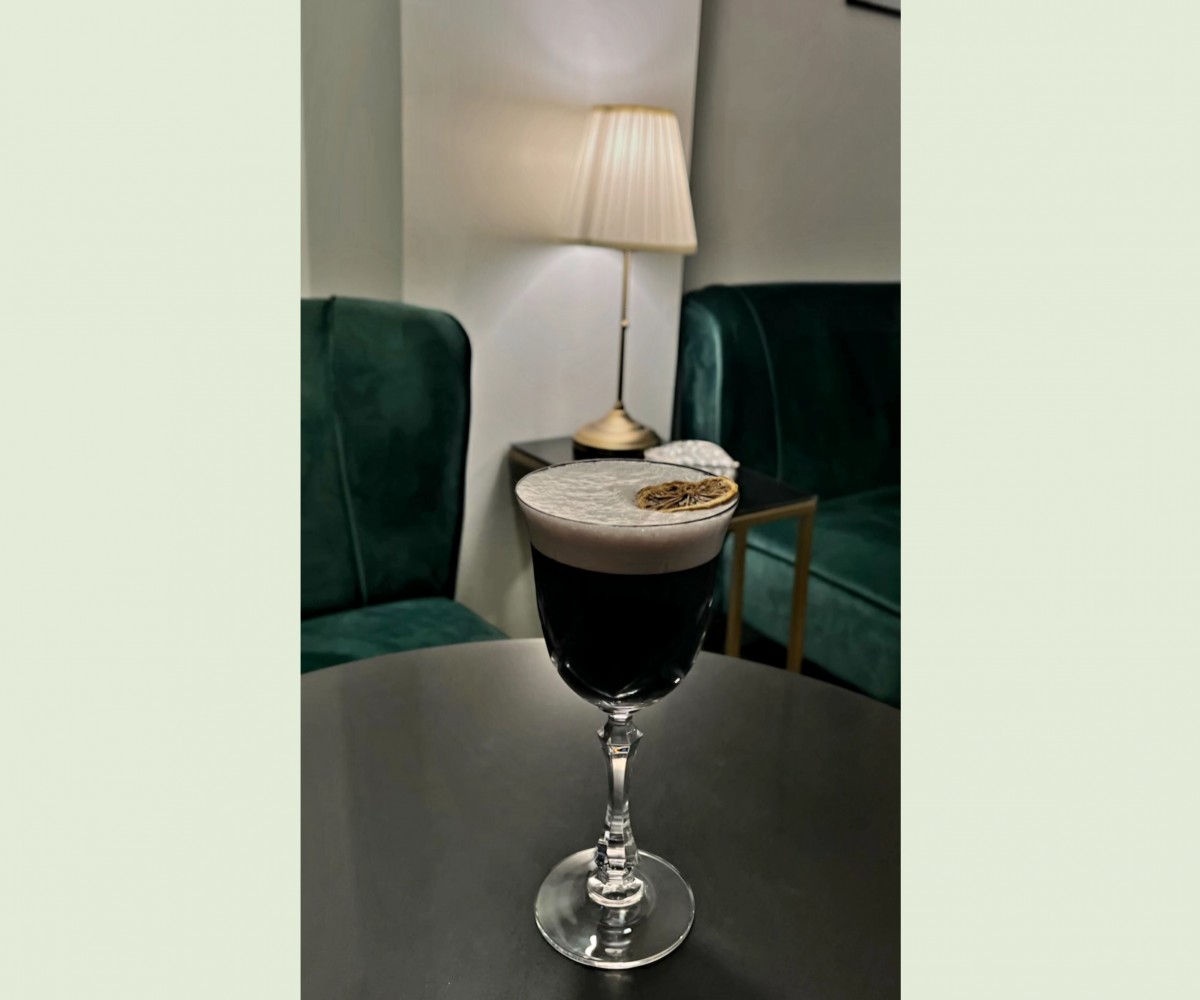 Black vodka, blackcurrant syrup, grape juice, crème de cassis, fairy foam