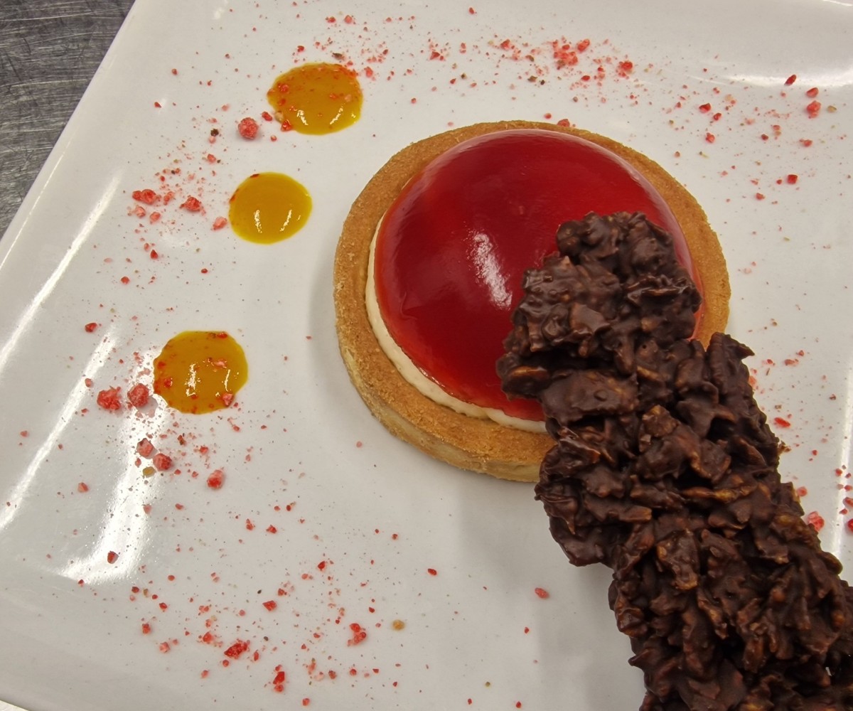 Tartelette aux agrumes, diplomate vanillée et rose des sablesPOSSIBILITE SANS FRUIT A COQUE