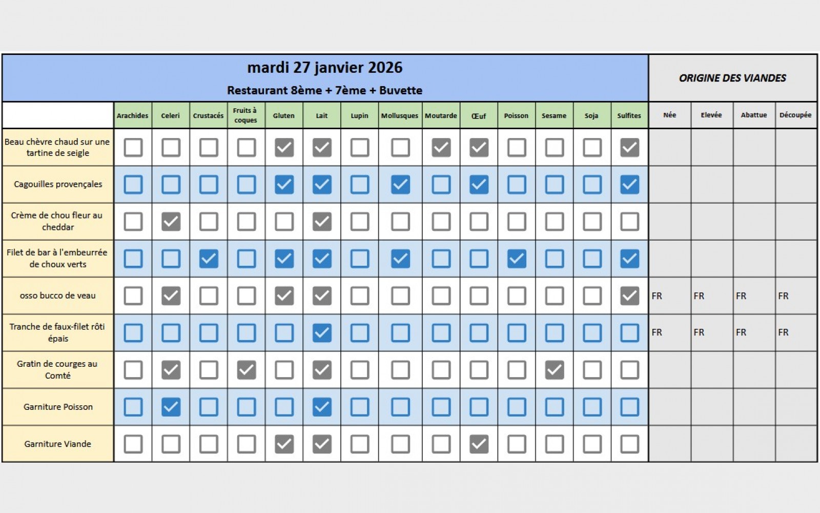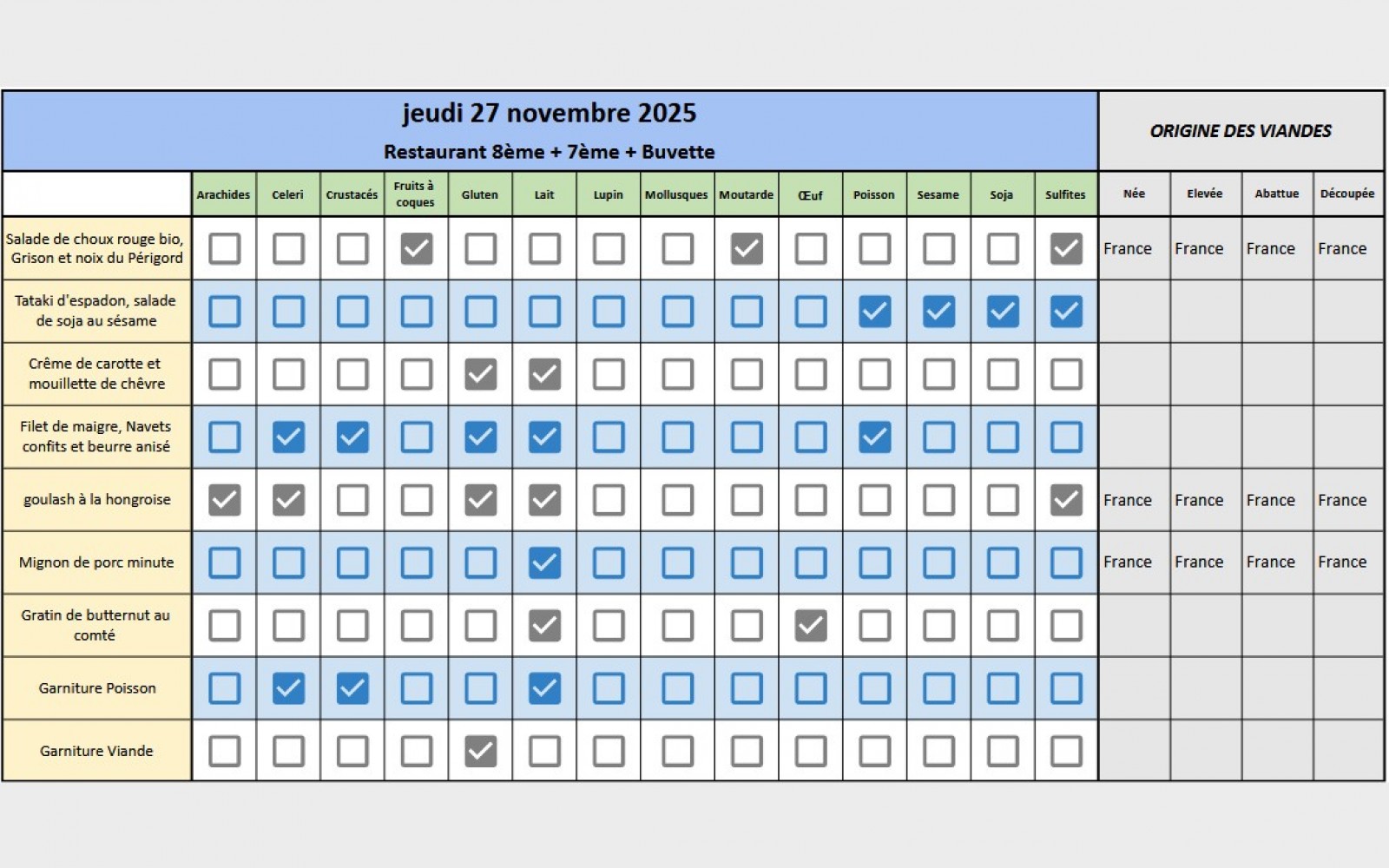 Pour connaitre les allergènes présents dans nos plats, vous pouvez vous référer à l'onglet "Allergènes".