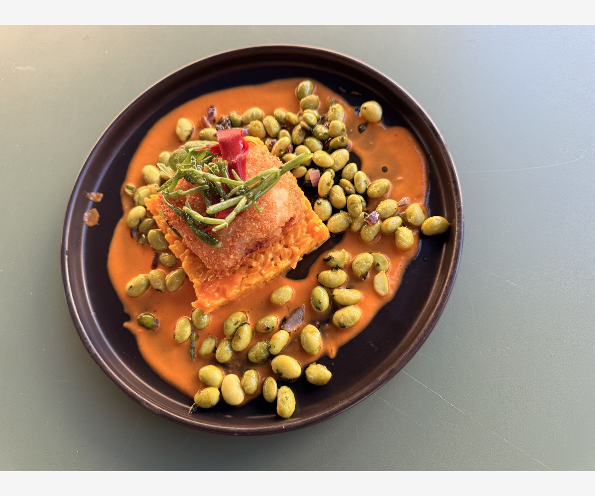 Пармантье из конфи из свиной щеки, насыщенного медового соуса и специй Магриба