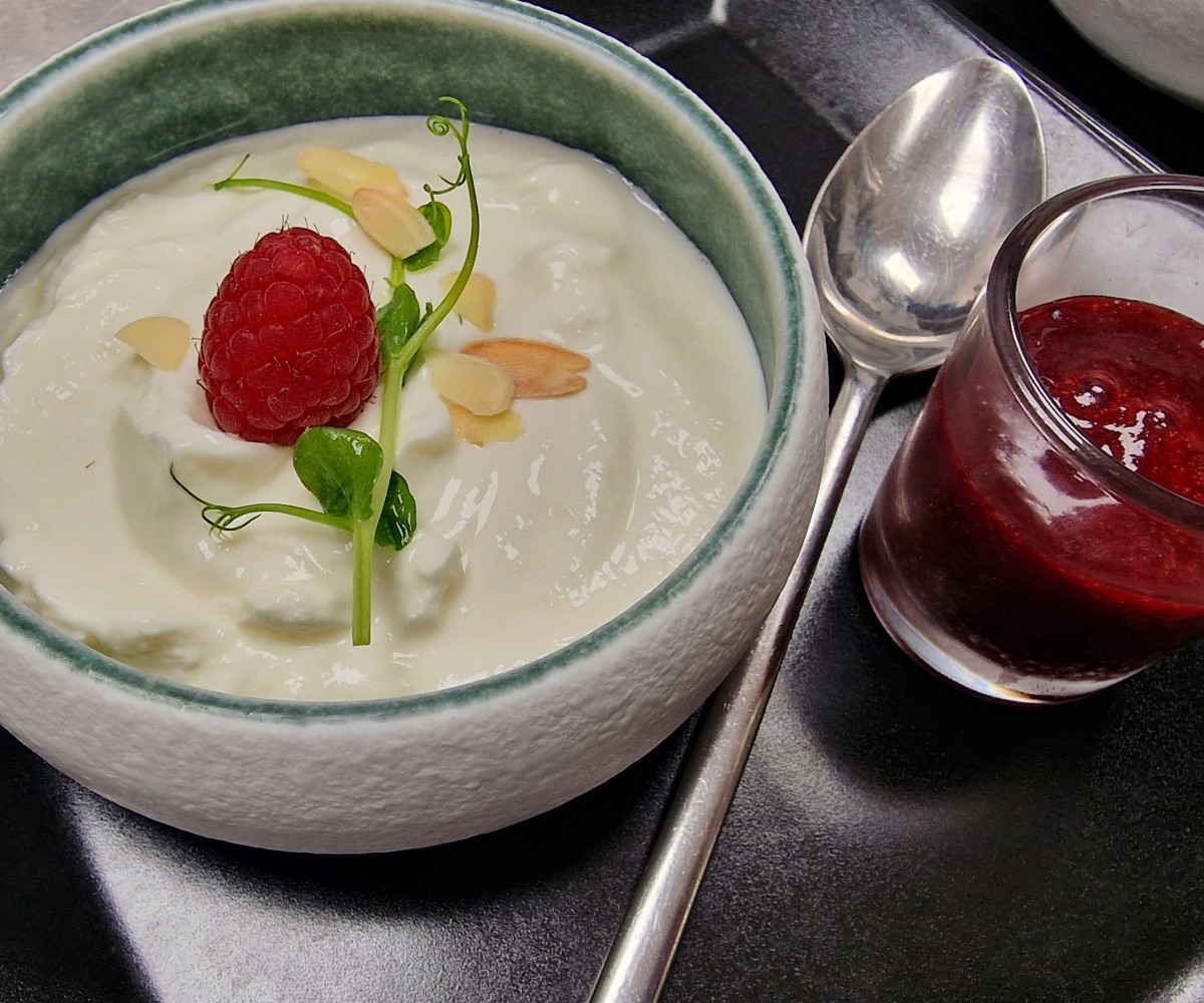 红鱼柳、斯佩尔特小麦饭、烤花椰菜配微辣香料、咖喱酱甜点、费塞尔奶酪和奶酪