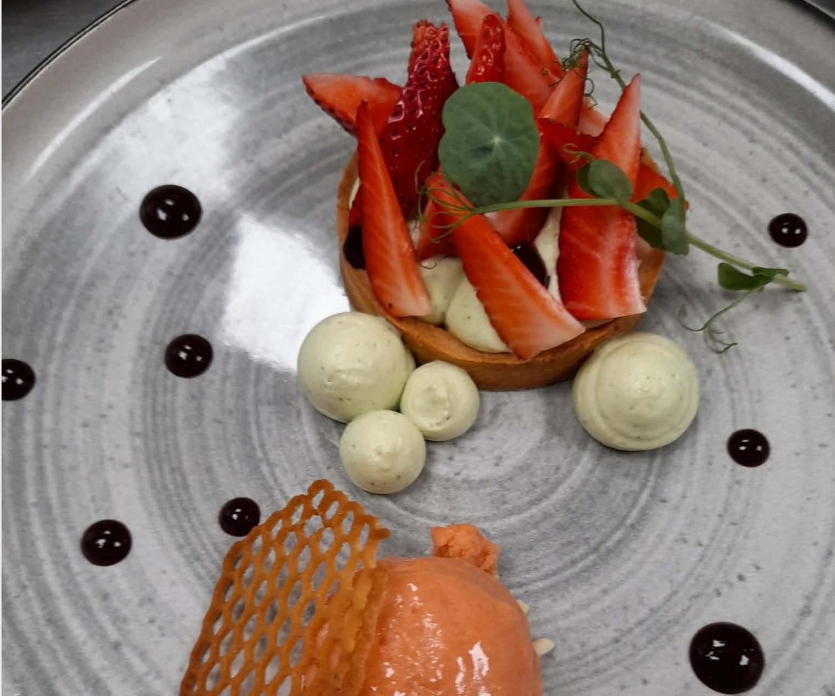 Tartelette aux fraises, diplomate basilic et sorbet rhubarbe maison순 가격-세금 및 서비스 포함