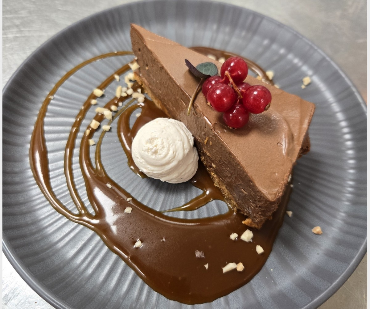 Cheese cake au chocolat d'Alexis, coulis de caramel