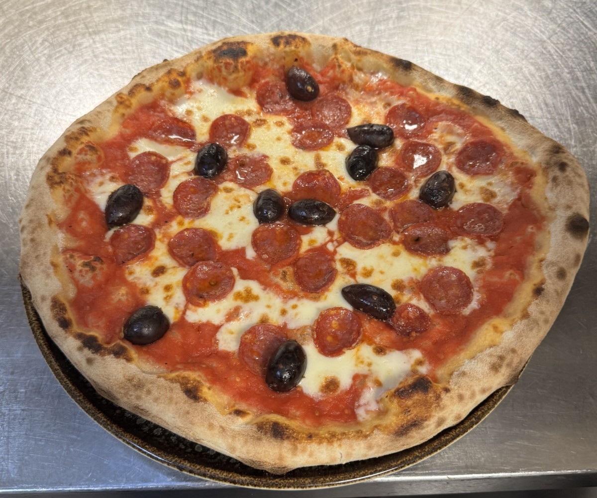 Pomodori San Marzano - mozzarella - carciofi - funghi misti - olive (attenzione ai semi) - prosciutto italiano