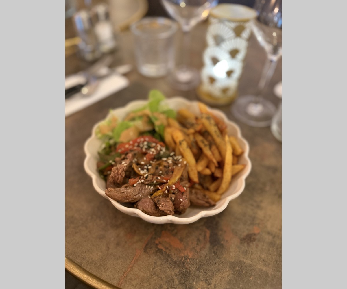 Τα μπιφτέκια και τα κρεατικά μας σερβίρονται με σπιτικές τηγανητές πατάτες και πράσινη σαλάτα.Σάλτσα της επιλογής σας επιπλέον: 1,20€