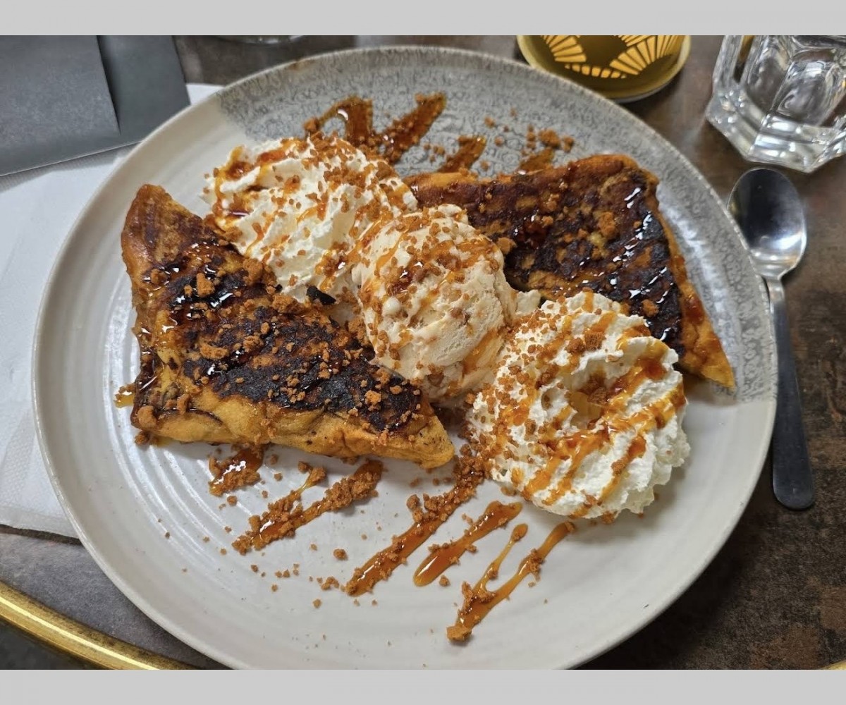 Σαλάτα Mesclun ή ρόκα (ανάλογα με τη διαθεσιμότητα), κομμάτια μπέικον, κρουτόν, τοστ με κατσικίσιο τυρί, μέλι, βραστό αυγό, ντοματίνια, κόκκινα κρεμμύδια, φρέσκα μανιτάρια