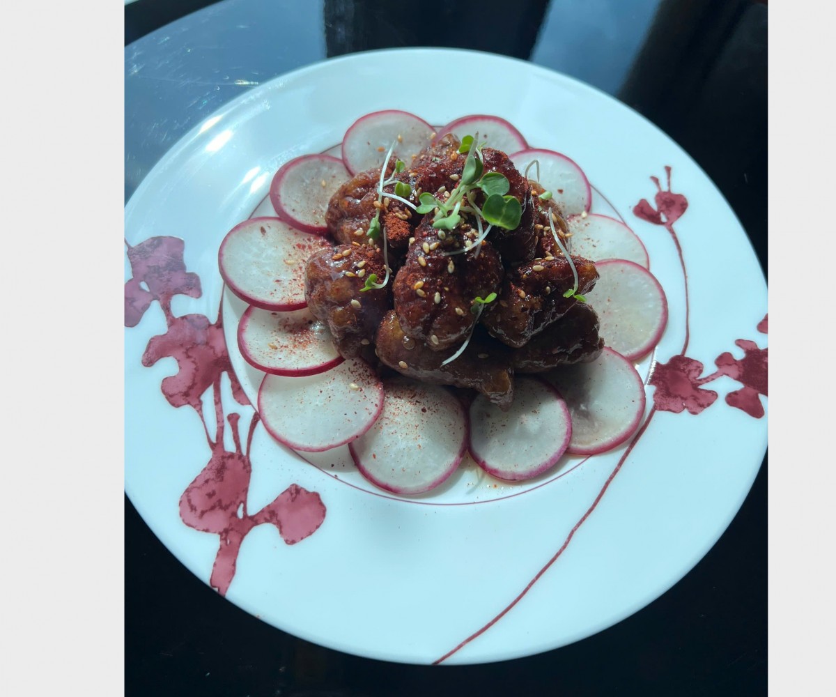Bochecha de boi cozida lentamente com alho dourado (metade)
