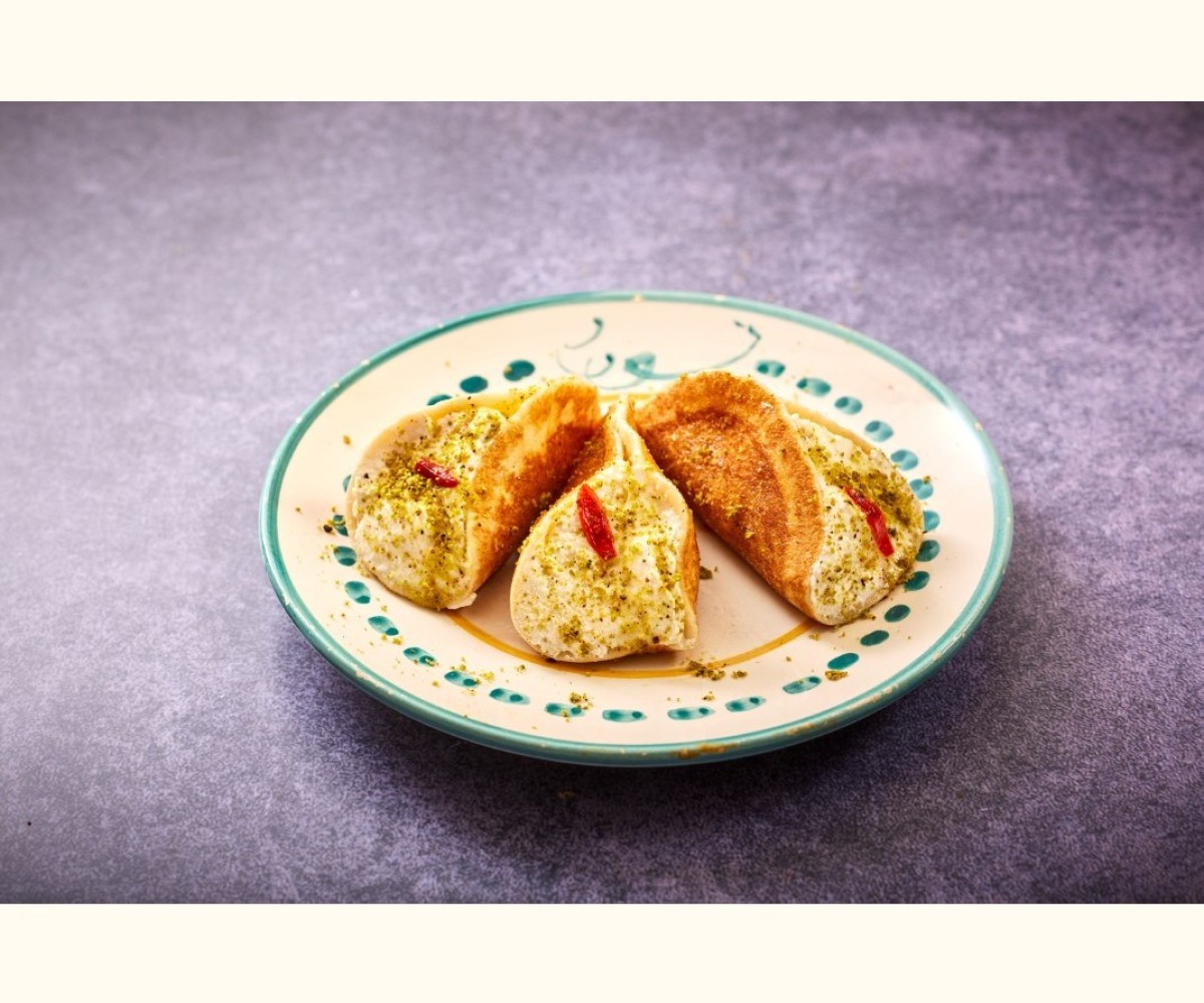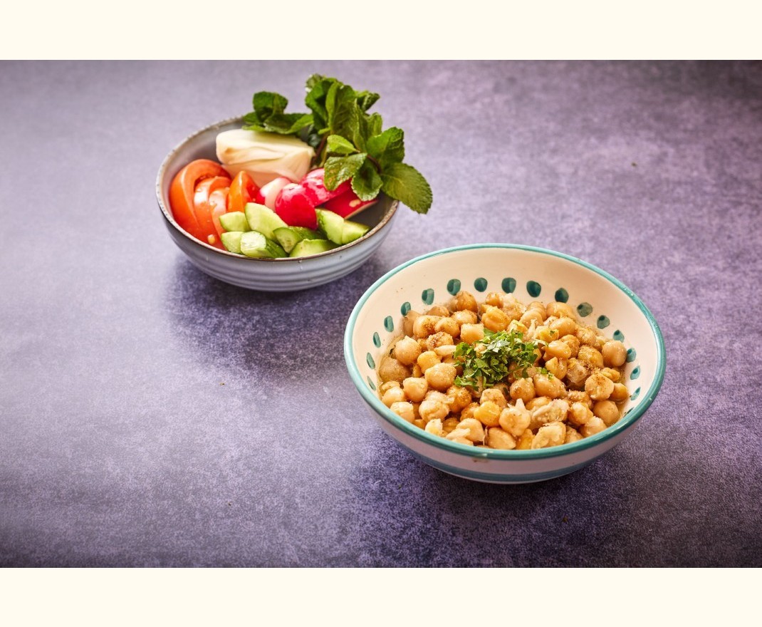 Purée de pois chiche, dés d’agneau mariné aux épices d'Orient, sumac & pignon de pinPizzettas Libanaises