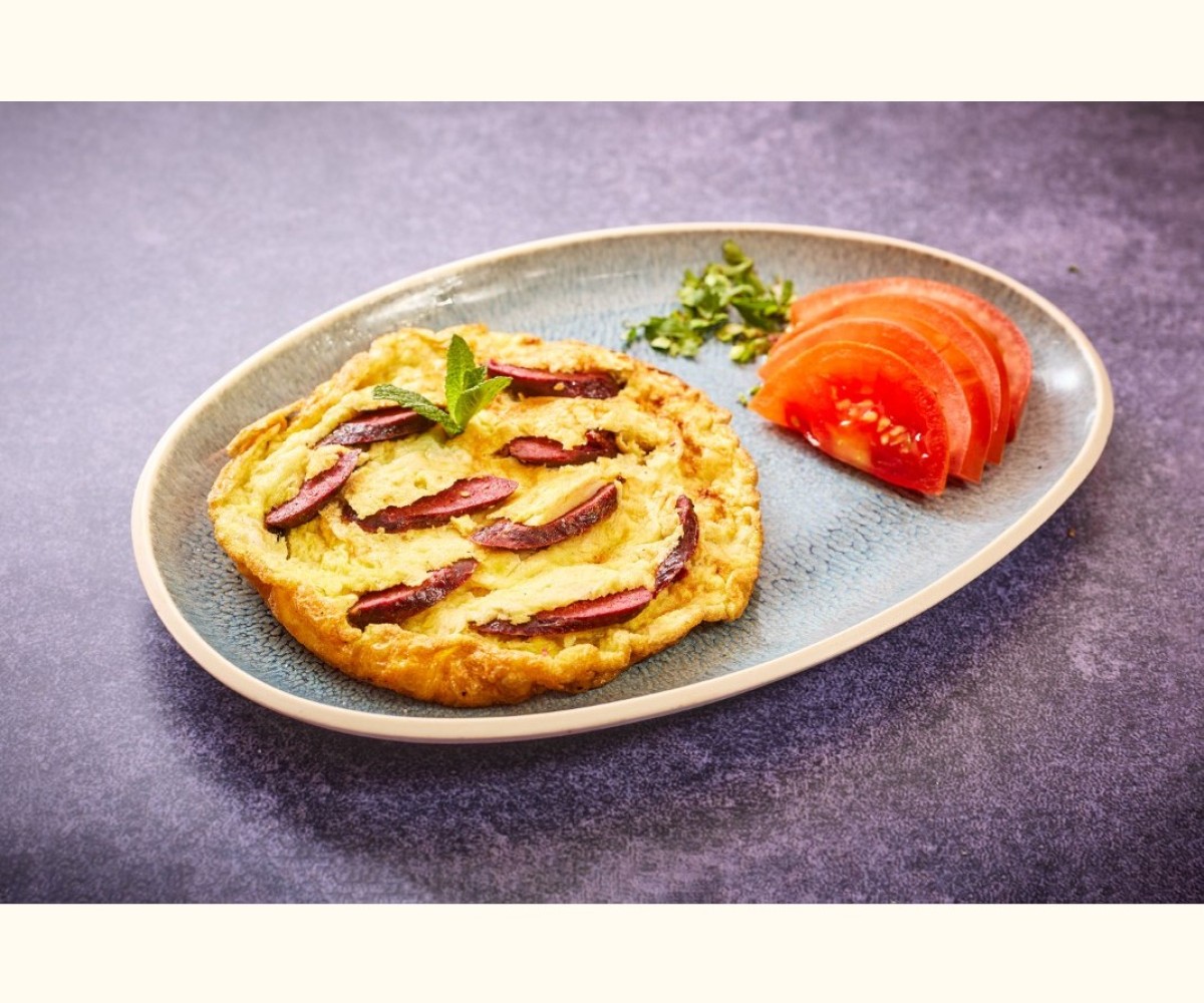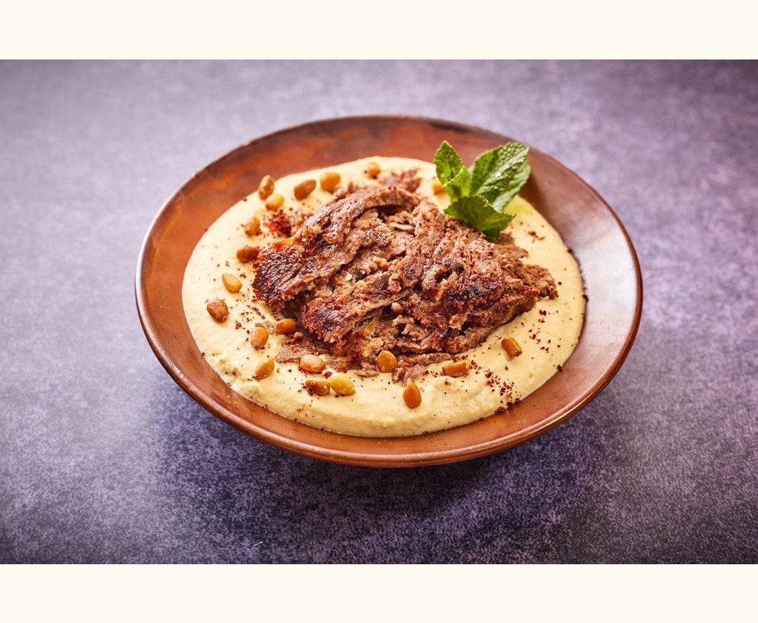 Purée de pois chiche, fines tranches de bœuf & d'agneau aux épices d'Orient