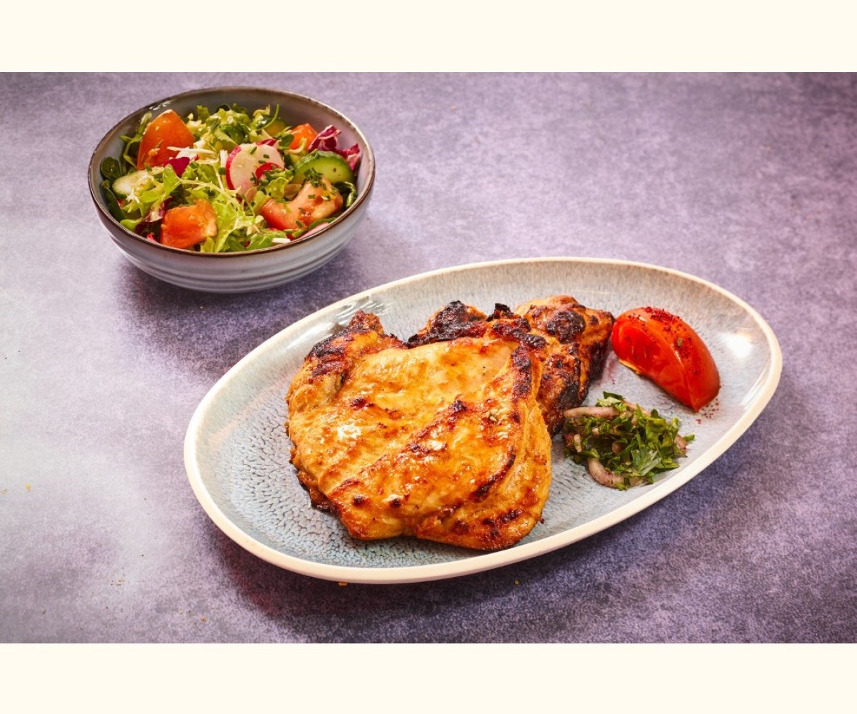 Émincé de poulet, mariné & rôti à la brochePlats Signatures