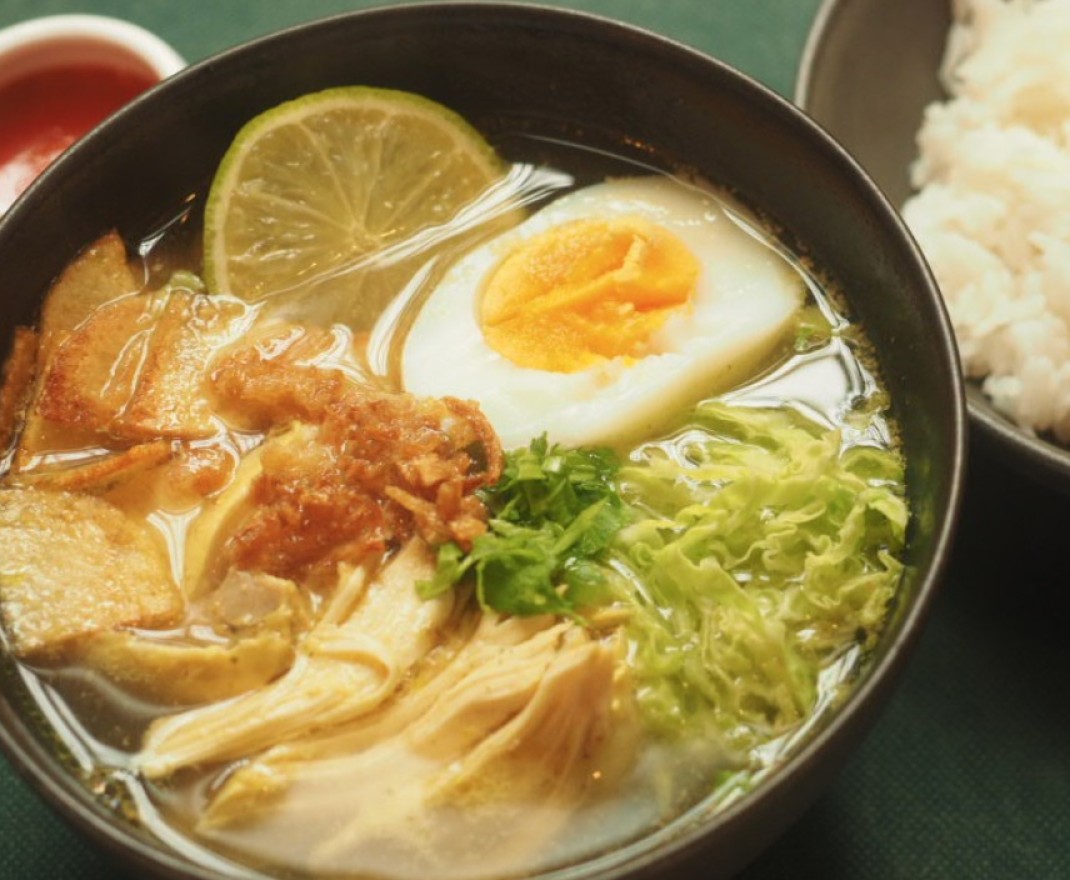ing ; costilla de cerdo, cilantro, salsa de soja de indonesia, salsa de soja, cebolla, ajo, gengibre, galanga, curcuma, citronela, hojas de lima kaffir