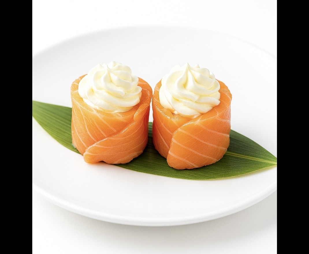 Rouleau de cream cheese onctueuse, enrobé d’algue nori, pour une bouchée fondante et savoureuse. ( 8 pièces)Allergènes: Gluten, Algue, Oeuf , Lait