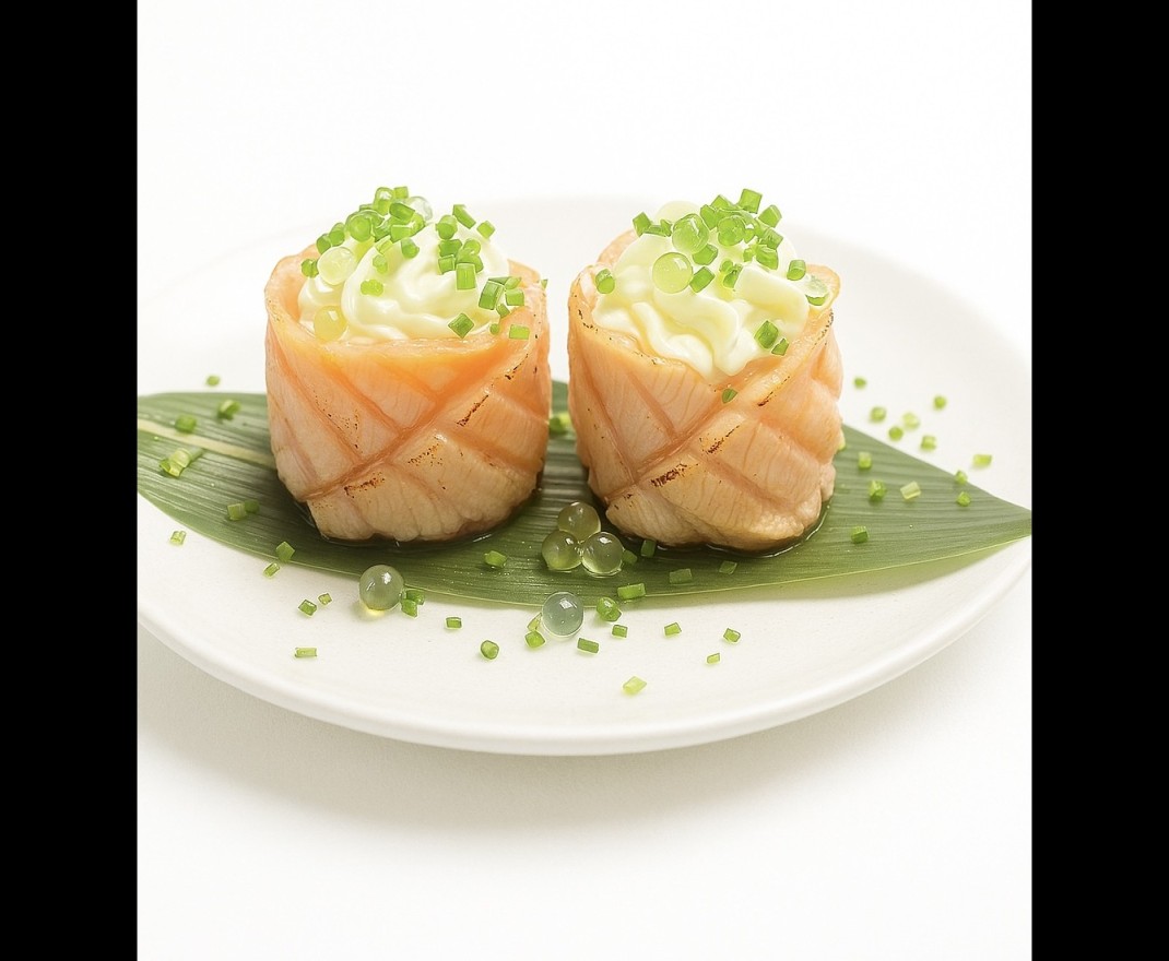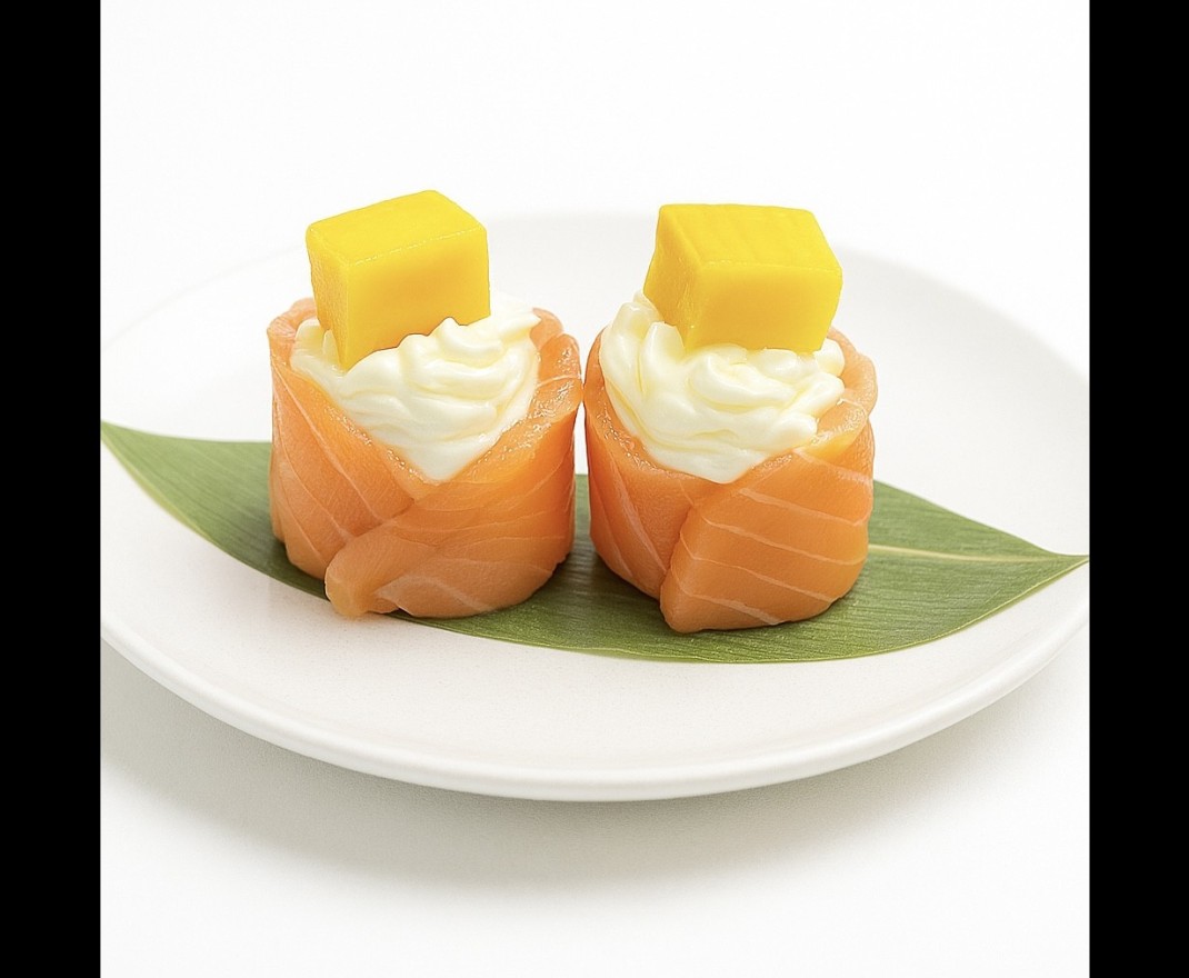 Gunkan enroulé de saumon frais, fromage crémeux et une touche sucrée de mangue, pour une explosion de saveurs fruitées et délicates à chaque bouchée. (2 pièces)Allergènes : Lait, Soja, Fruits à Coques, Gluten, Crustacés, Poisson