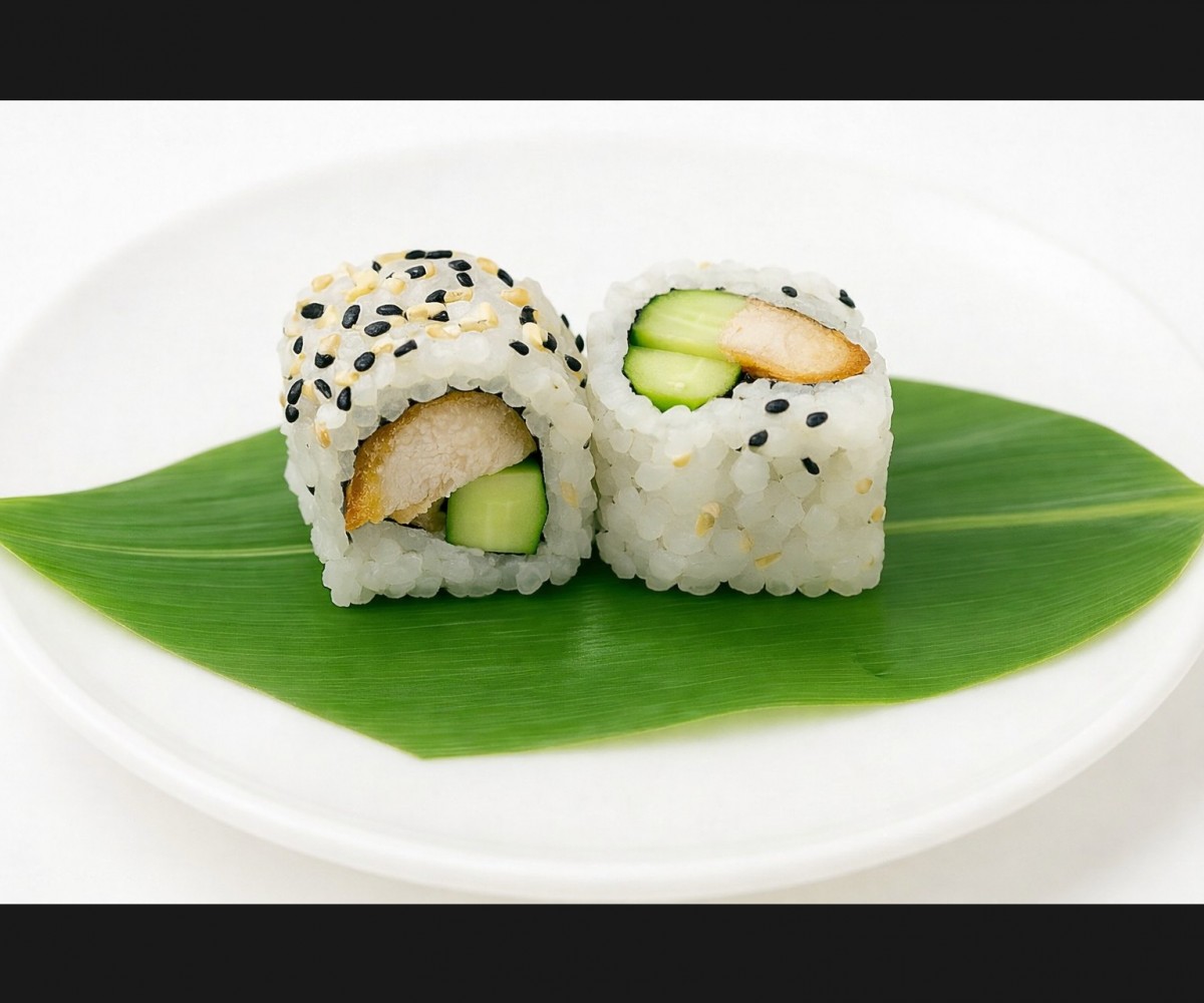 Poulet croustillant et concombre croquant, roulés dans du riz vinaigré pour une bouchée légère et savoureuse. (8 pièces)Produit halal