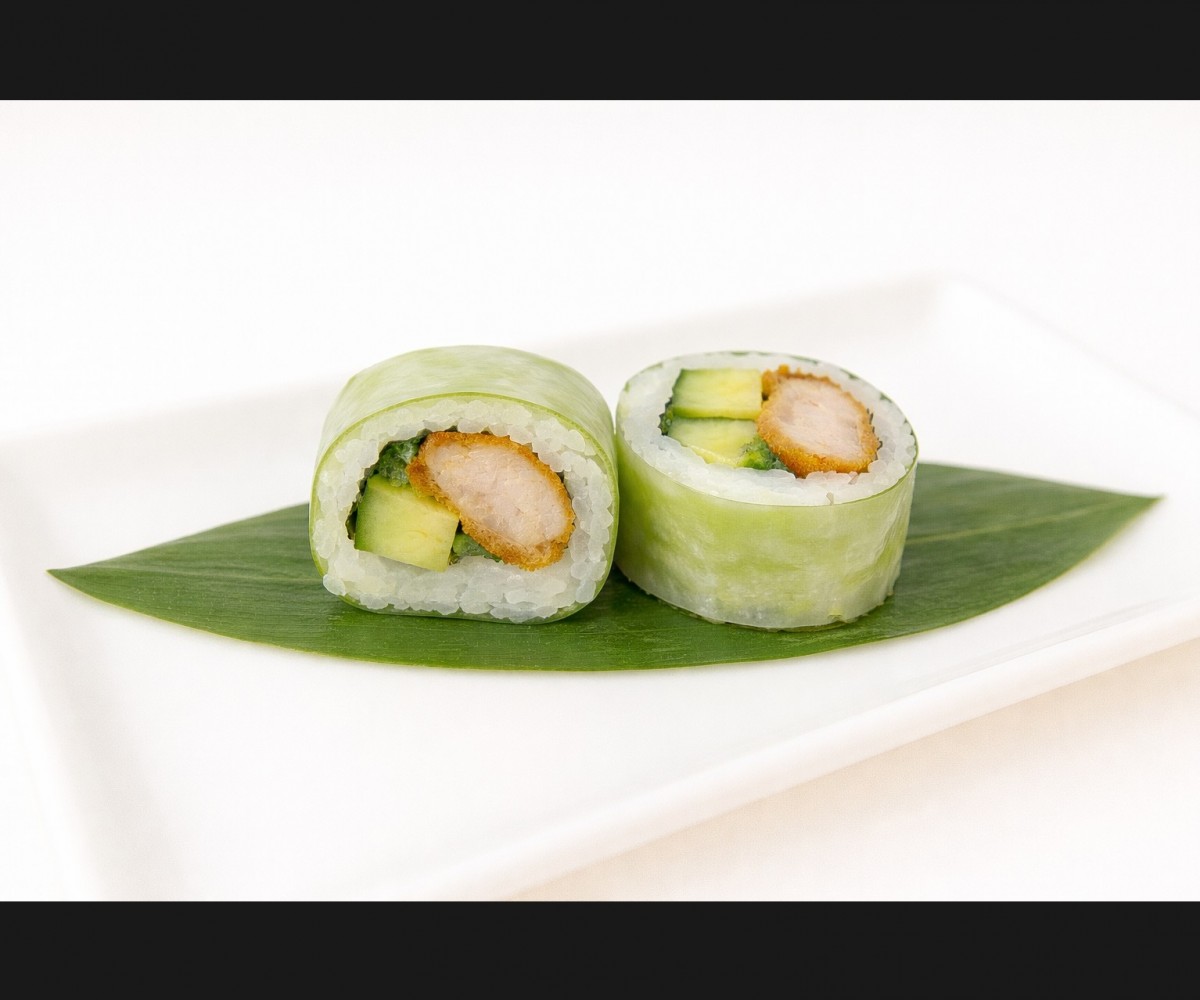 Tempura croustillante et concombre croquant, roulés dans du riz vinaigré pour une bouchée gourmande et légère.