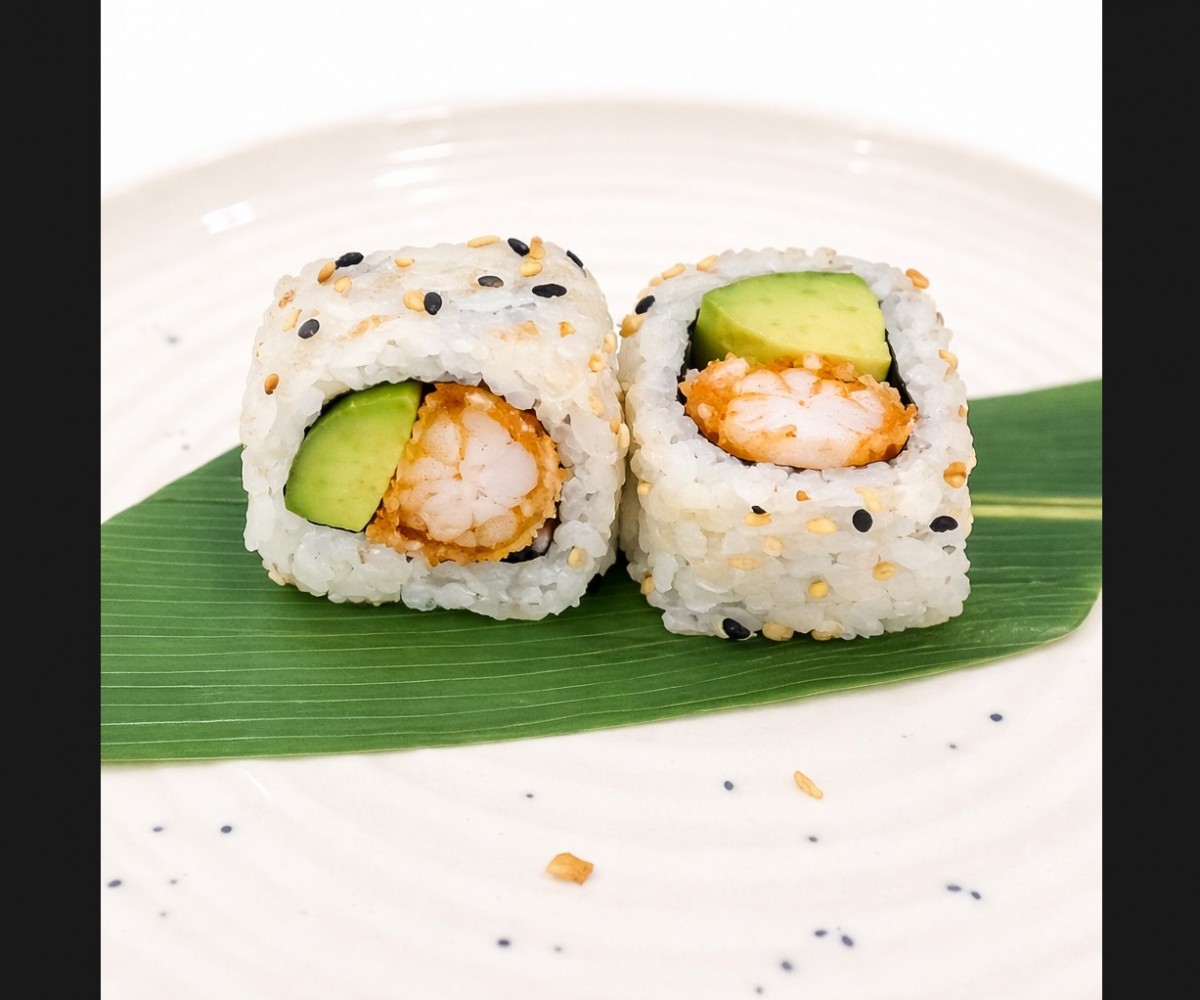 Tempura croustillante et avocat fondant, roulés dans du riz vinaigré pour une bouchée gourmande et savoureuse. (8 pièces)Allergènes : Lait, Soja, Fruits à Coques, Gluten, Crustacés, Algue