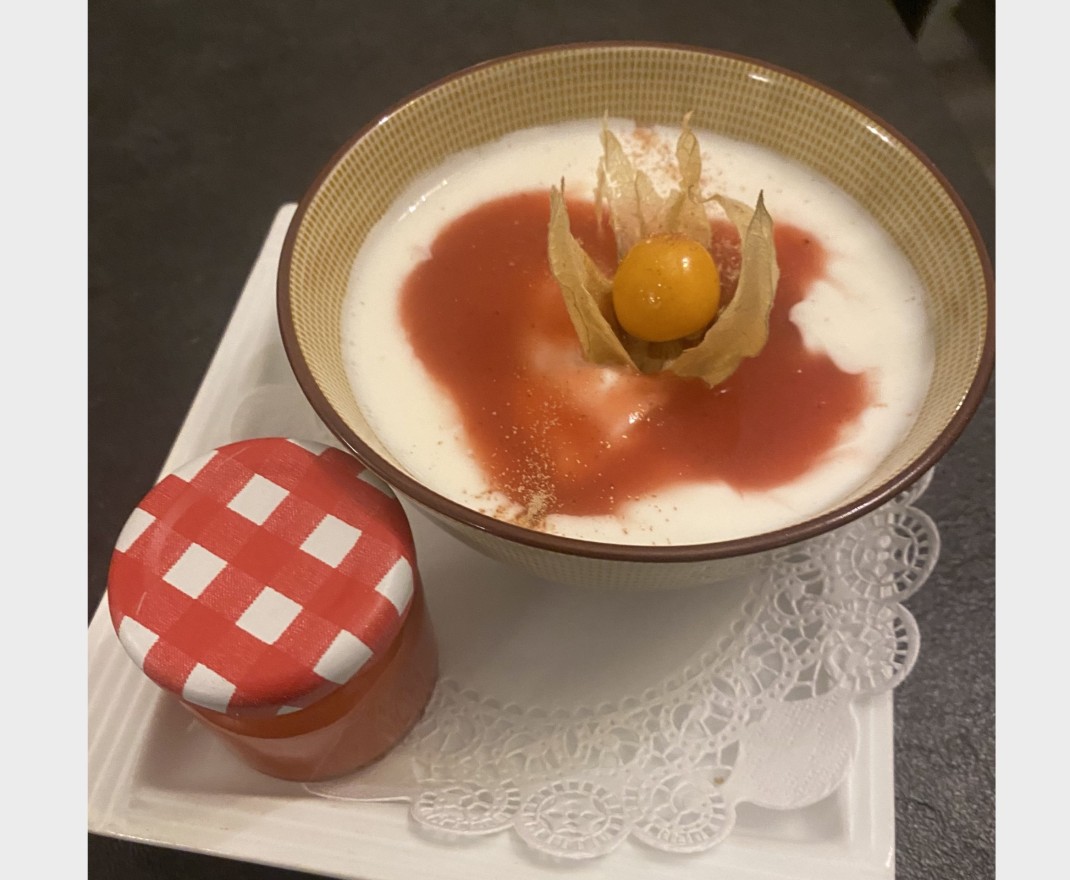 Coupe de fromage blanc et coulis de fruits rouges et granula « maison »