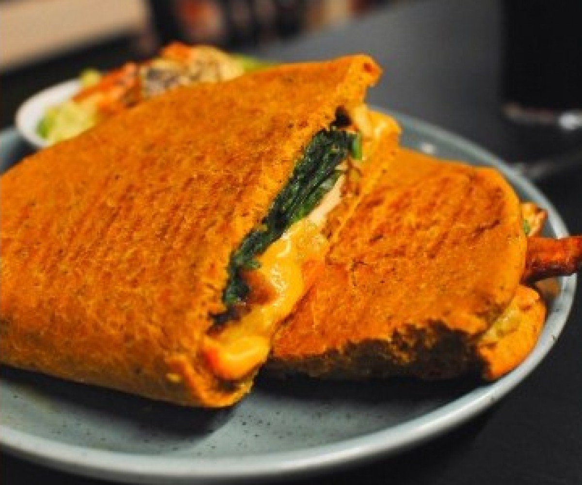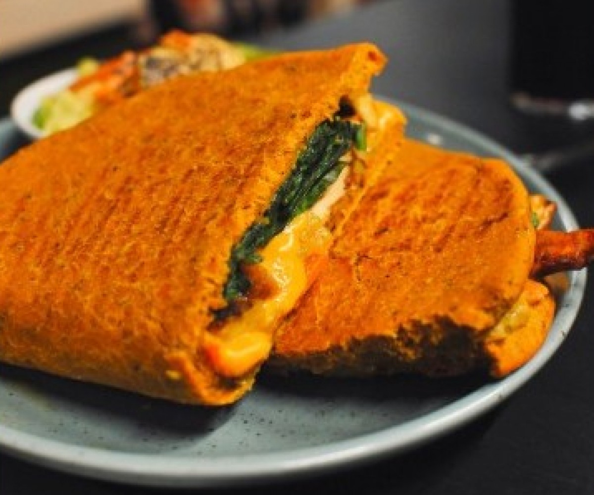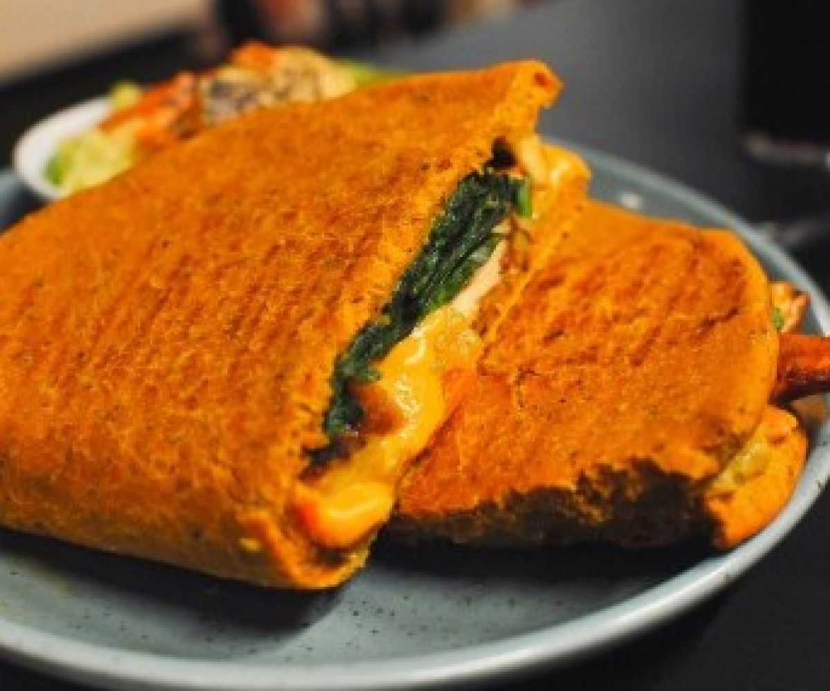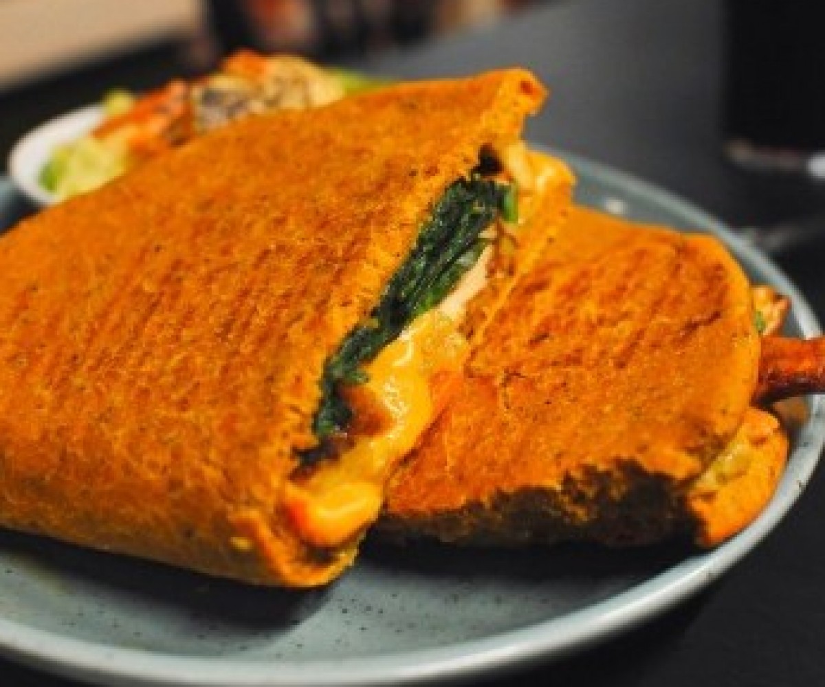 Berbere sauce, pickled vegetables, plantain, cheddar cheese, spinach and cilantro - turmeric bread / served with mango quinoa saladNet prices - Taxes and service included