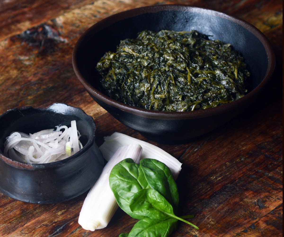 Epinards en branche et échalotes