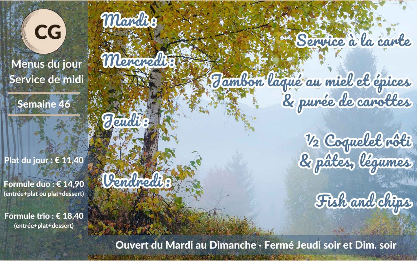 Spaetzles frais maison, lardons, oignons, crème fraîche, gratinés au munster fermier, salade. Vinaigrette maison.Burgers