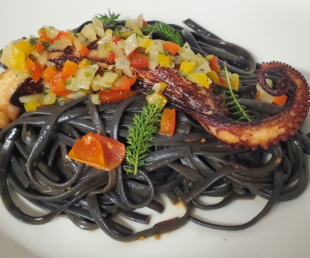 Mafaldine à la truffe noire et burrata crémeuse.
