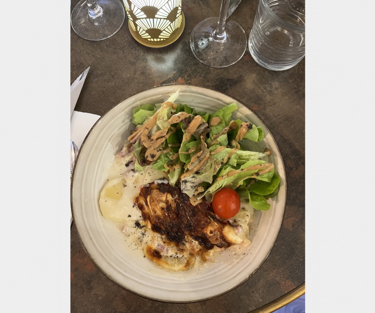 Salade mesclun ou roquette (selon arrivage), lardons, croûtons, toasts de chèvre, miel, œuf poché, tomates cerises, oignons rouges. champignons fraisEntrées Maison